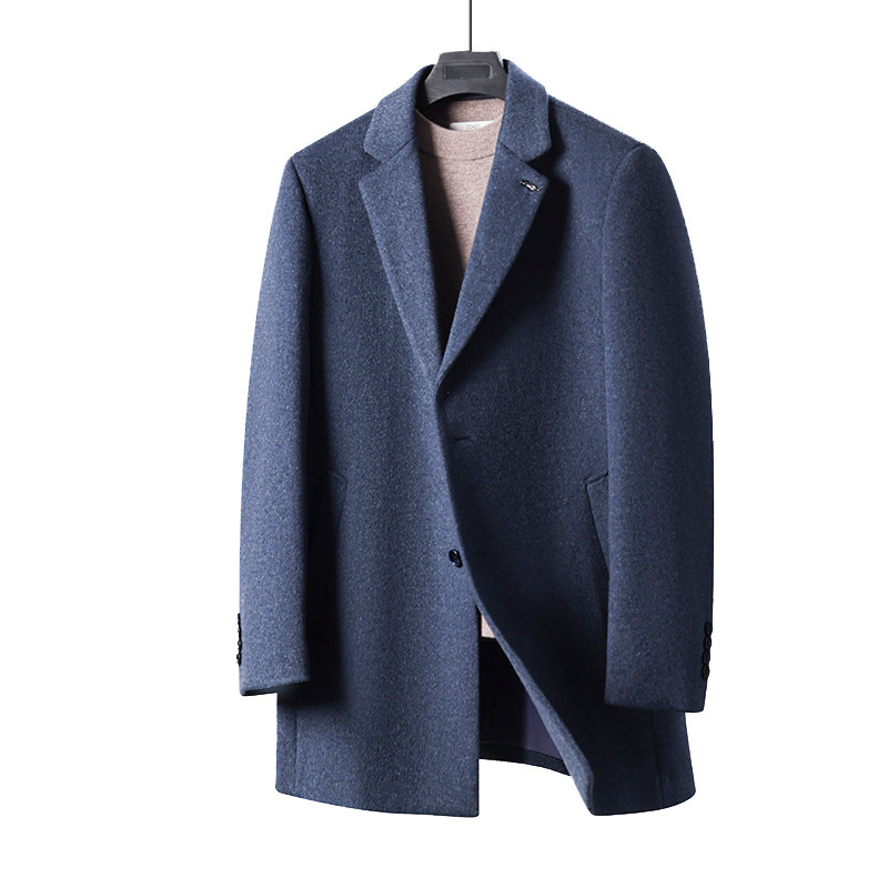 一线撤柜商务男式100绵羊毛新款简约绅士有型西服领中长羊毛大衣