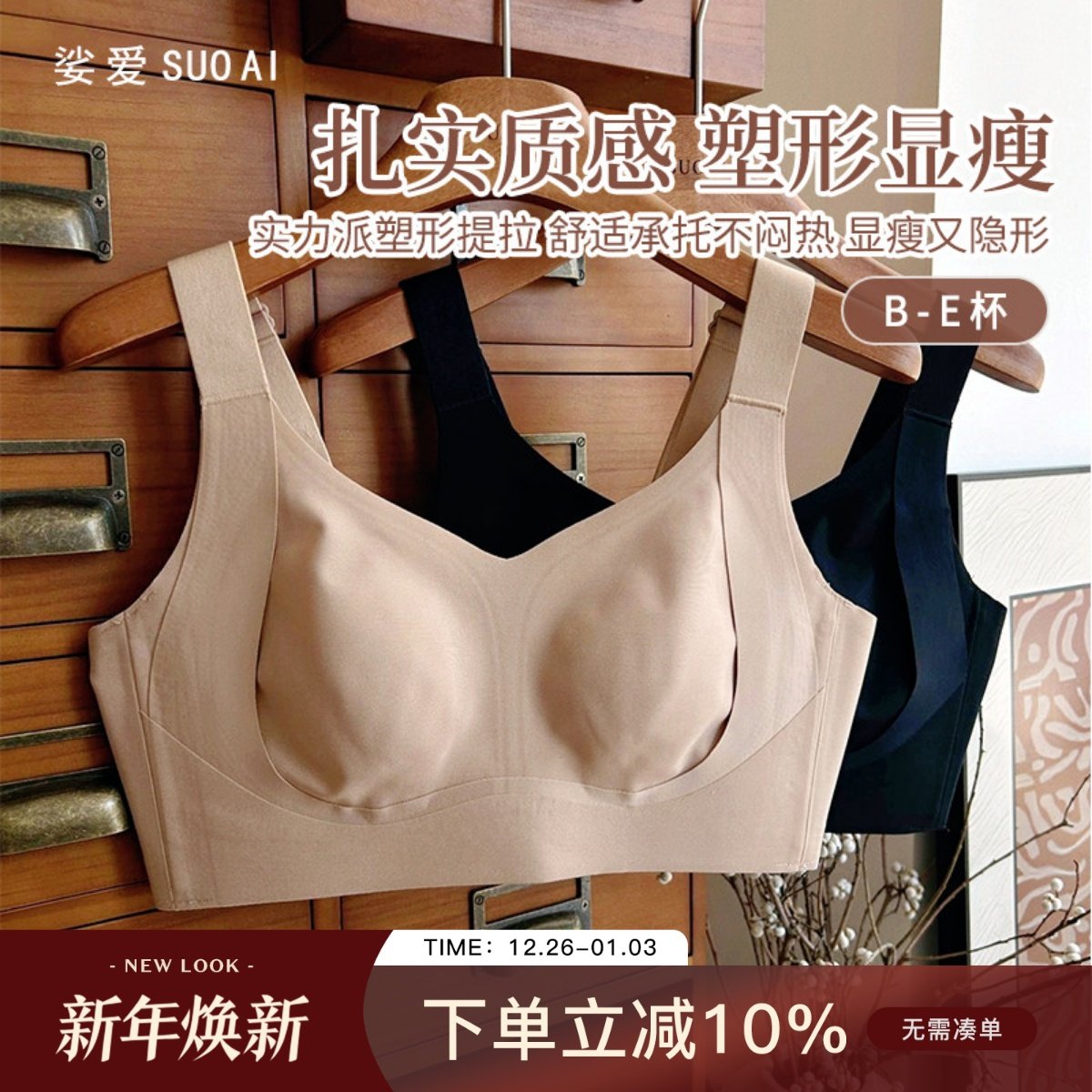 显瘦密码~无痕大胸显小无钢圈内衣上托软支撑收副乳防下垂文胸罩