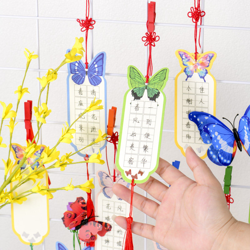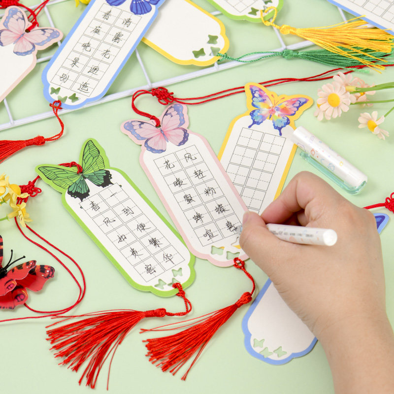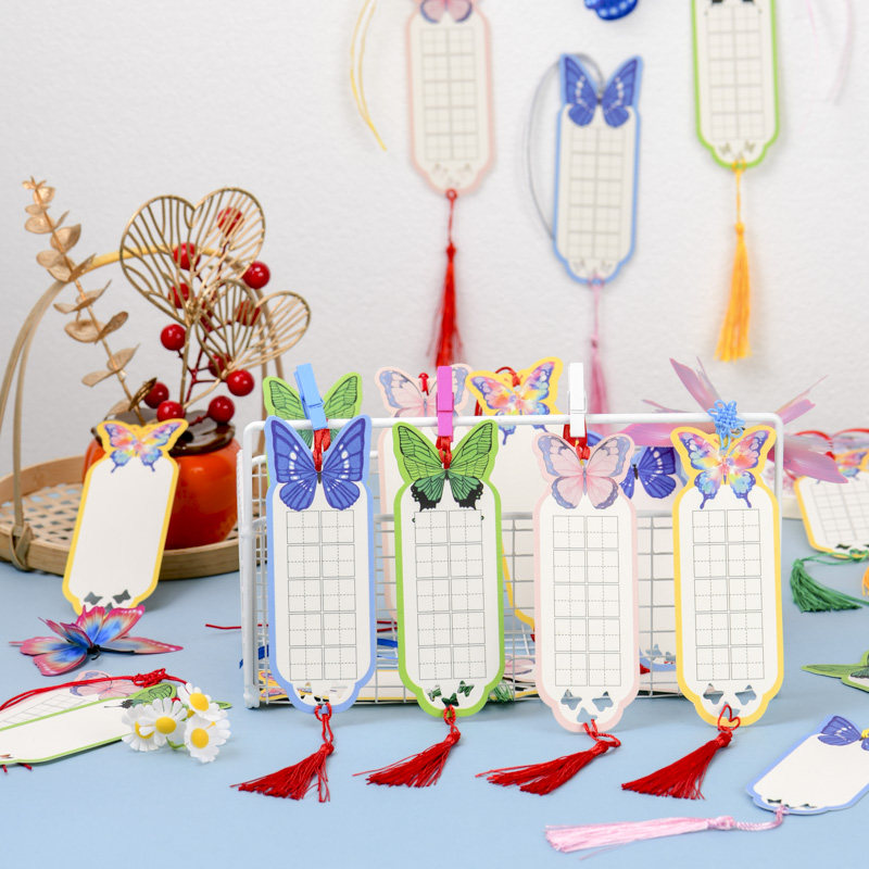 古风蝴蝶书法书签纸质空白田字格彩色异形古典中国风纸鸢风筝卡纸创意清新小学生diy手写硬笔祝福作品贺卡片