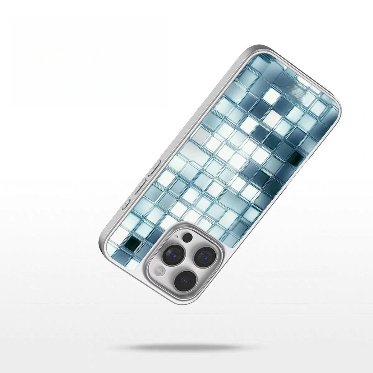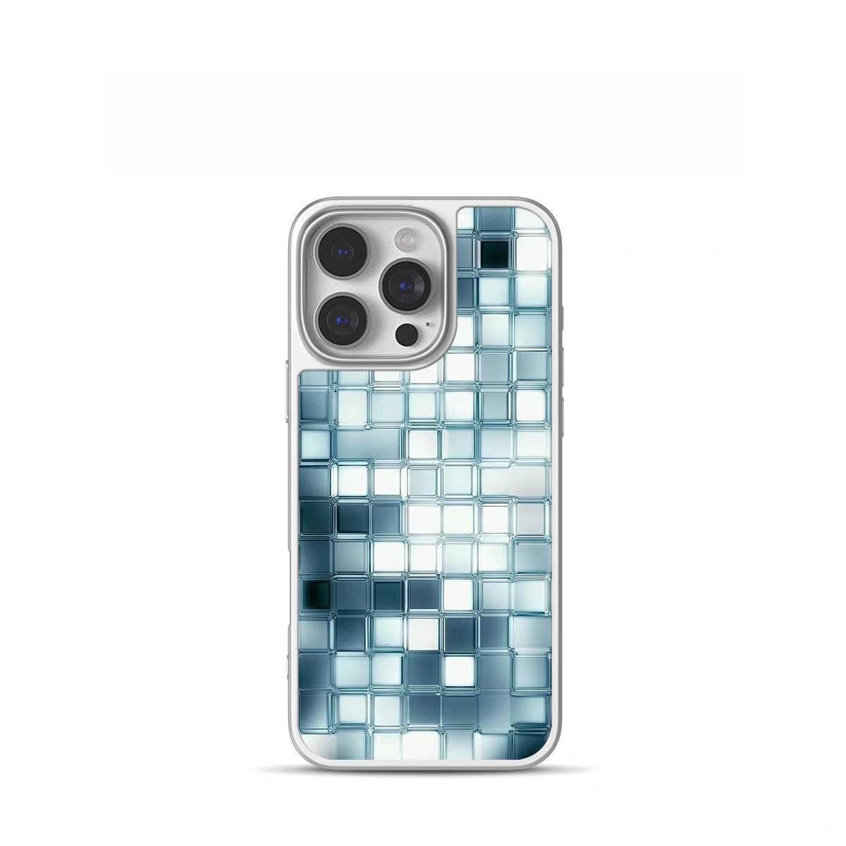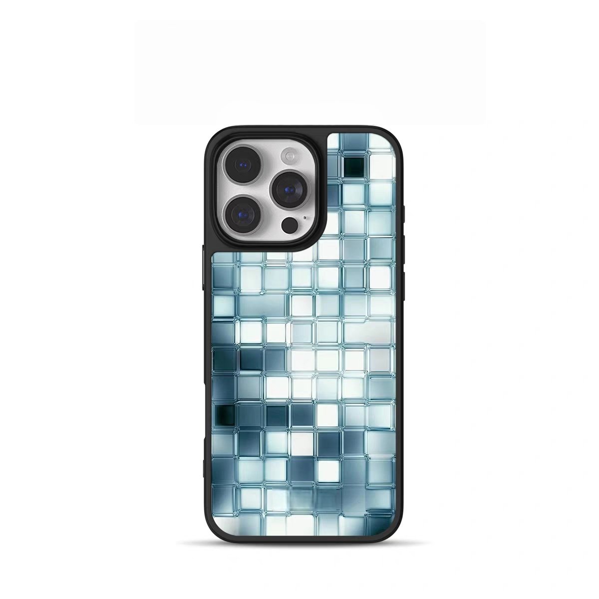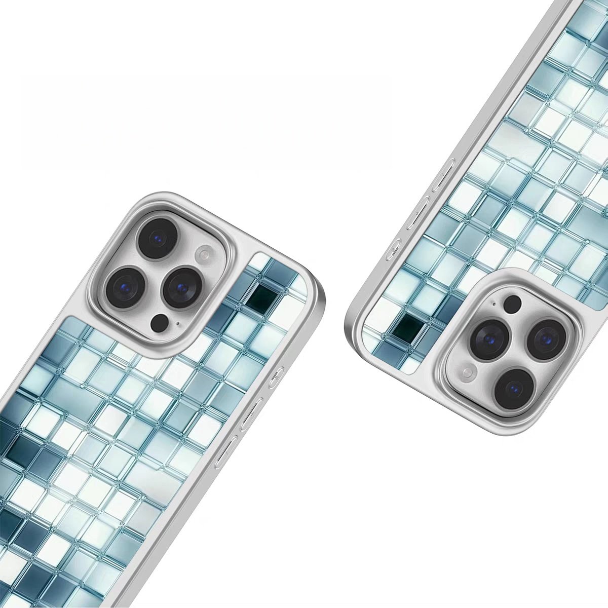 ins风冰蓝马赛克电镀银黑边磁吸适用苹果iPhone17promax手机壳1612pro小米1415Pro华为mate60p70三星S23防摔