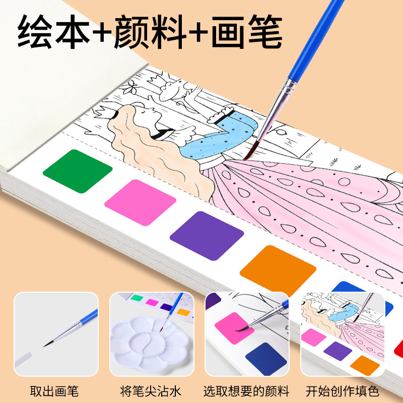 儿童水彩涂色本便签涂鸦画画填色书幼儿园水粉绘画本沾水颜色魔法