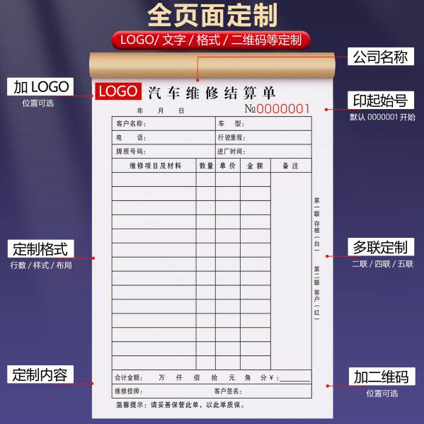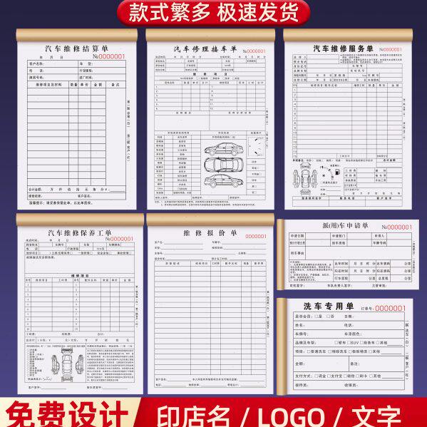 汽车维修结算清单二联修理厂销售服务单汽修店接车单修车保养工单