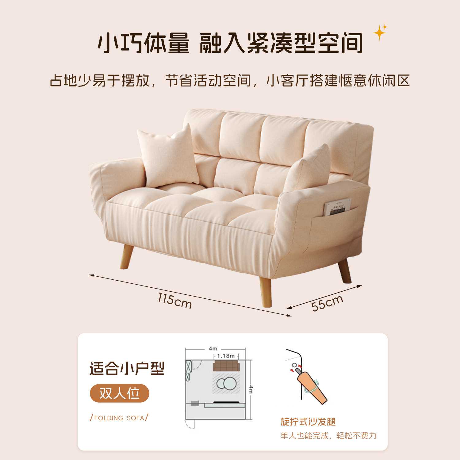 布艺沙发客厅小户型出租屋公寓双人折叠懒人小沙发床榻榻米2026无