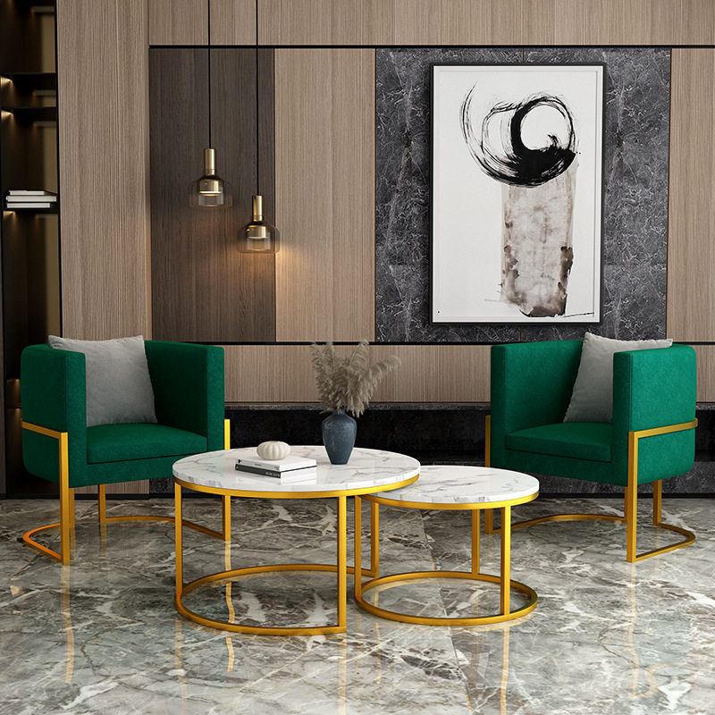 北欧布艺小沙发简约现代网红款轻奢服装店洽谈接待区桌椅组合