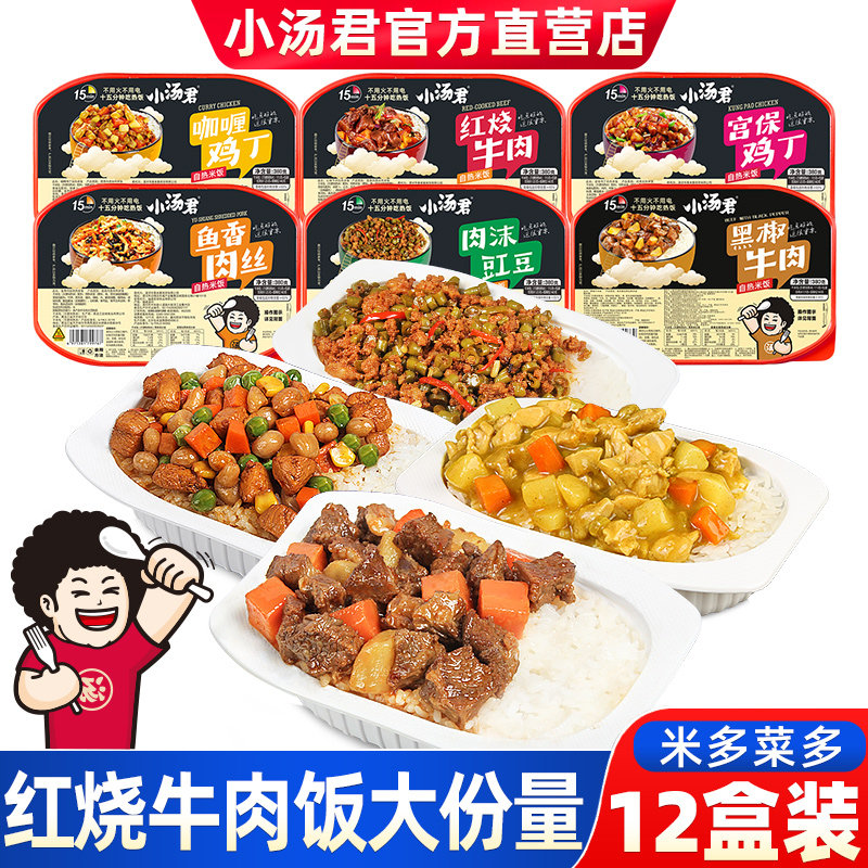 小汤君自热米饭大份量12盒自助速食方便自热饭食品牛肉好饭卤肉