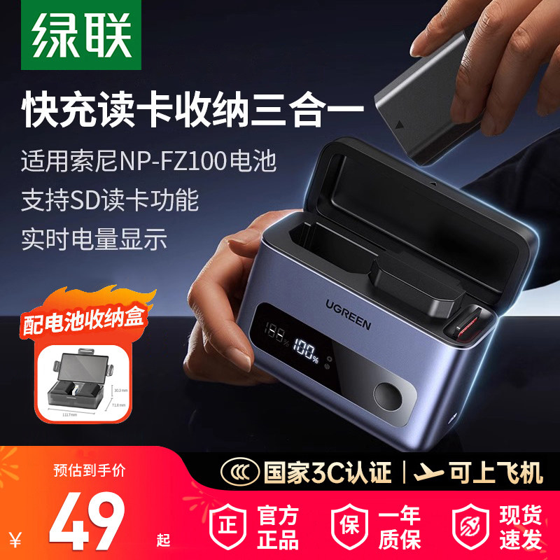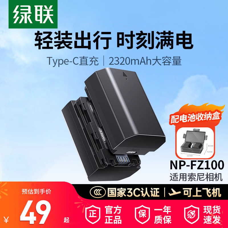 【国家3C认证】绿联np-fz100数码相机电池适用索尼sony A7M4 a7m3 A7R3 A7R4 7RM3 A6700单反相机充电器配件