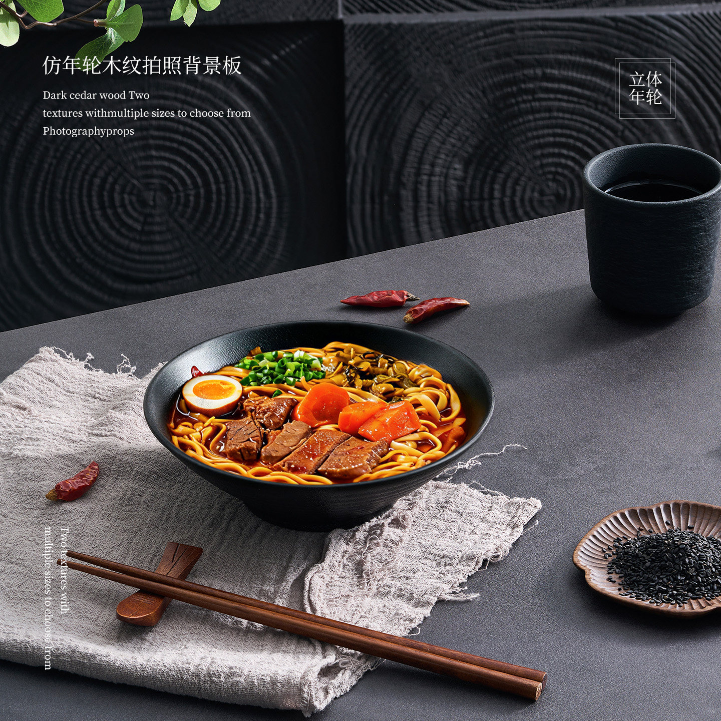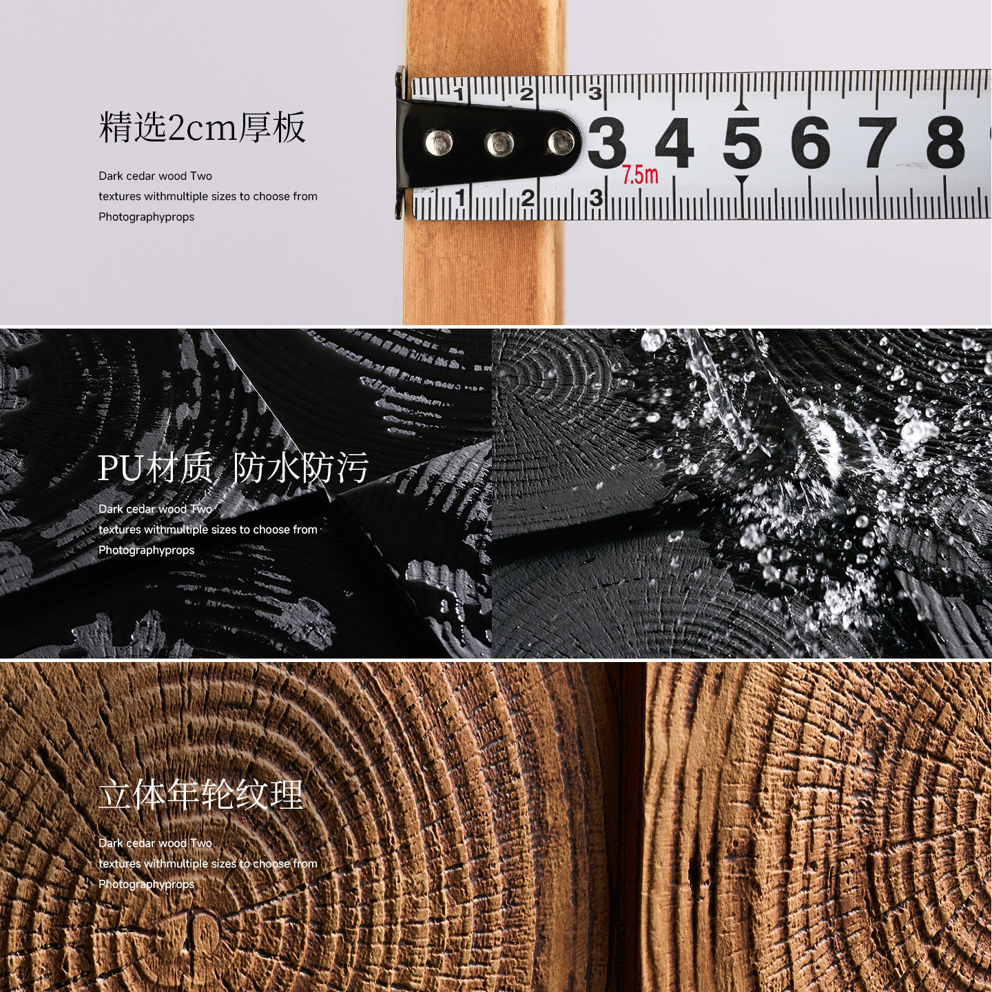 【立体仿年轮木纹】拍照背景板高级感中西式糕点美食菜谱摄影背景场景布置黑色棕色桌面墙面场景布置拍摄道具