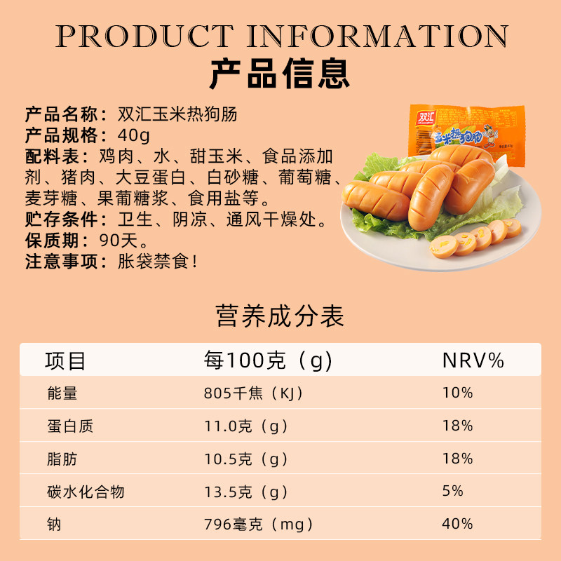 双汇玉米热狗肠40g即食零食香辣香脆火腿肠香甜玉米肠官方旗舰店