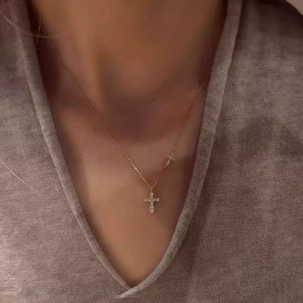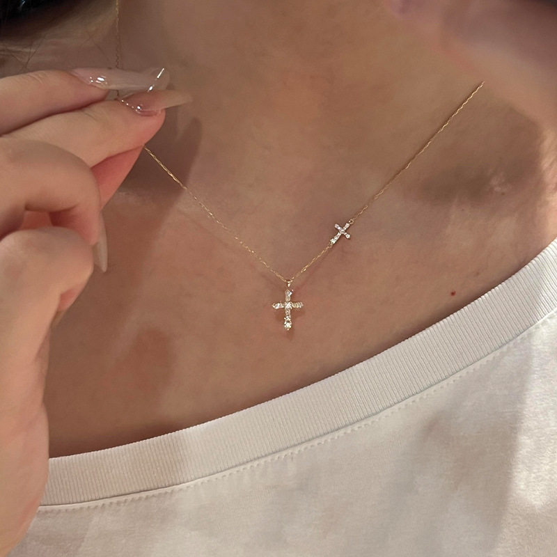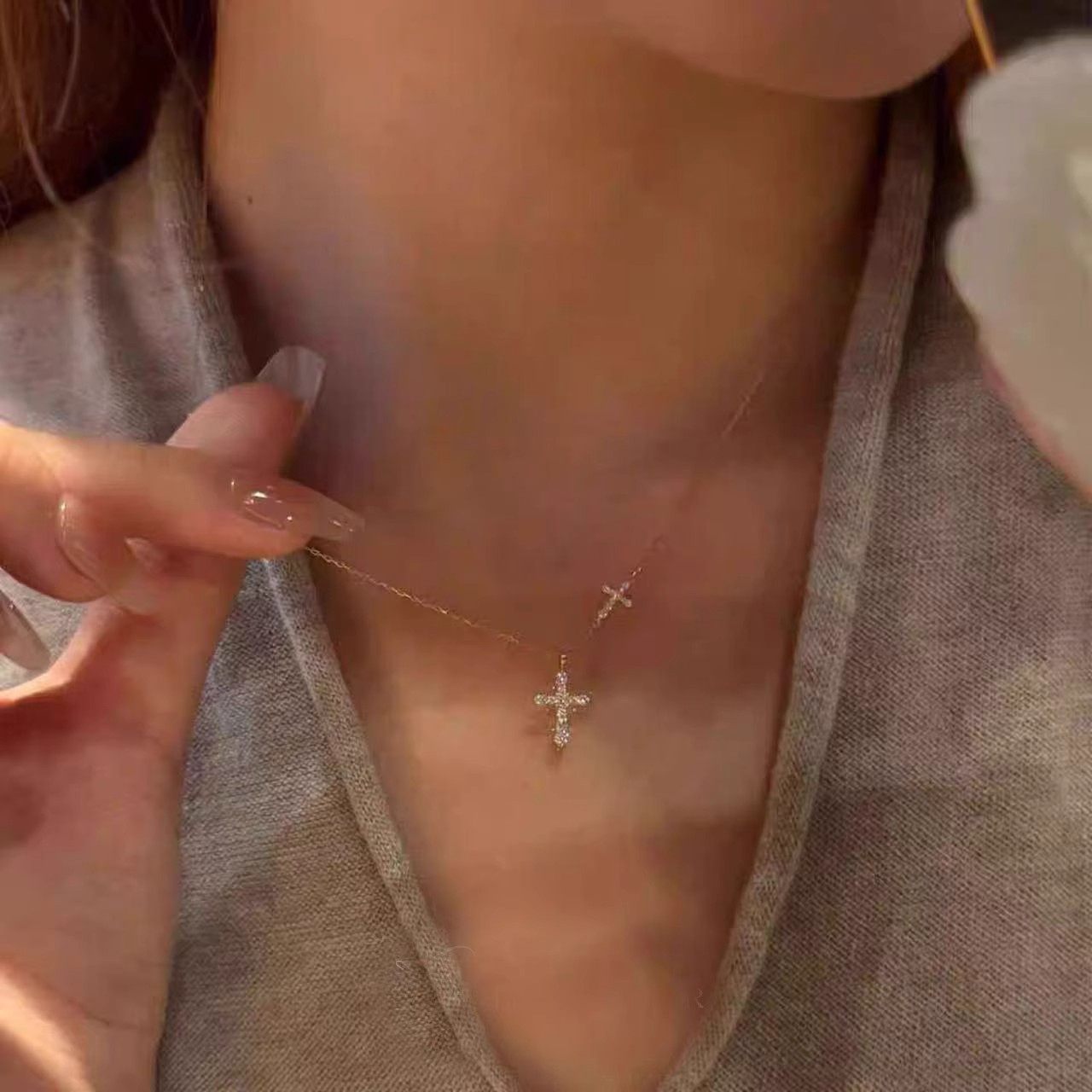 S925纯银双十字架项链女款2025新款配饰高级感轻奢小众复古吊坠