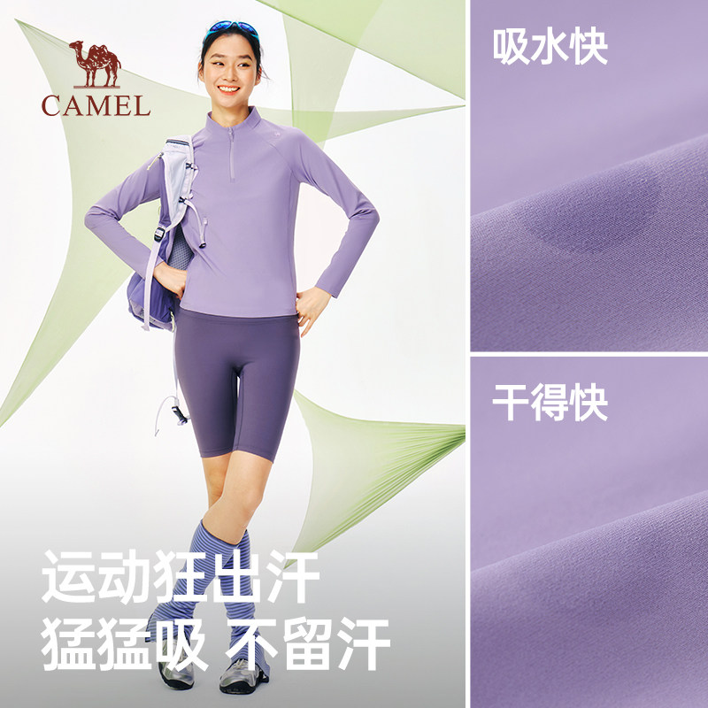 骆驼女装运动速干衣2026春季新款立领长袖T恤打底衣户外登山上衣