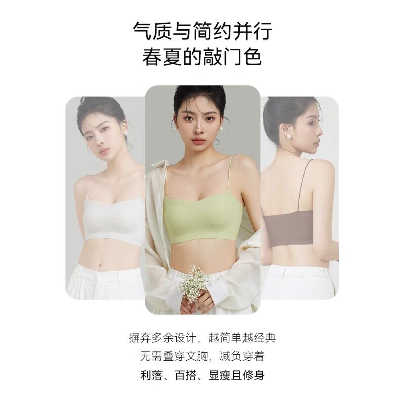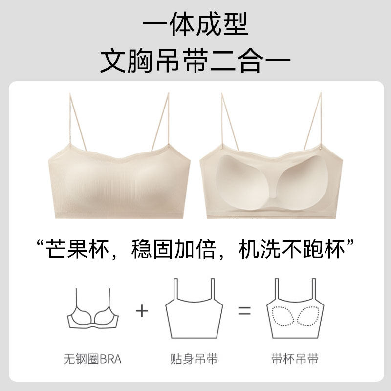 都市丽人细肩带内衣夏季薄款一体式无痕抹胸吊带2025新款美背文胸