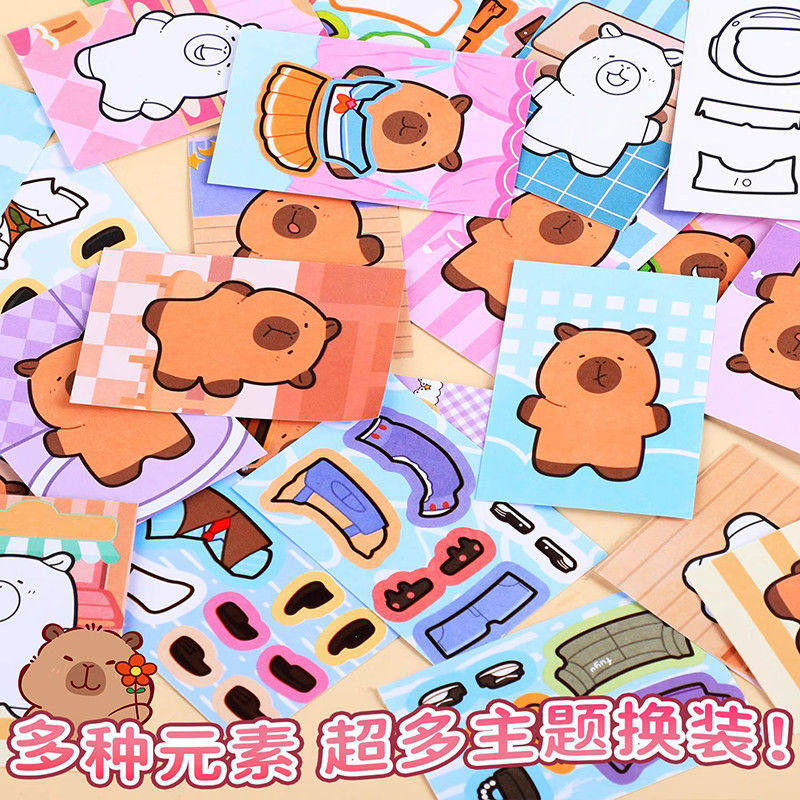 迷你换装豆豆本拉布布贴纸卡皮巴拉儿童益智卡通解压安静书玩具
