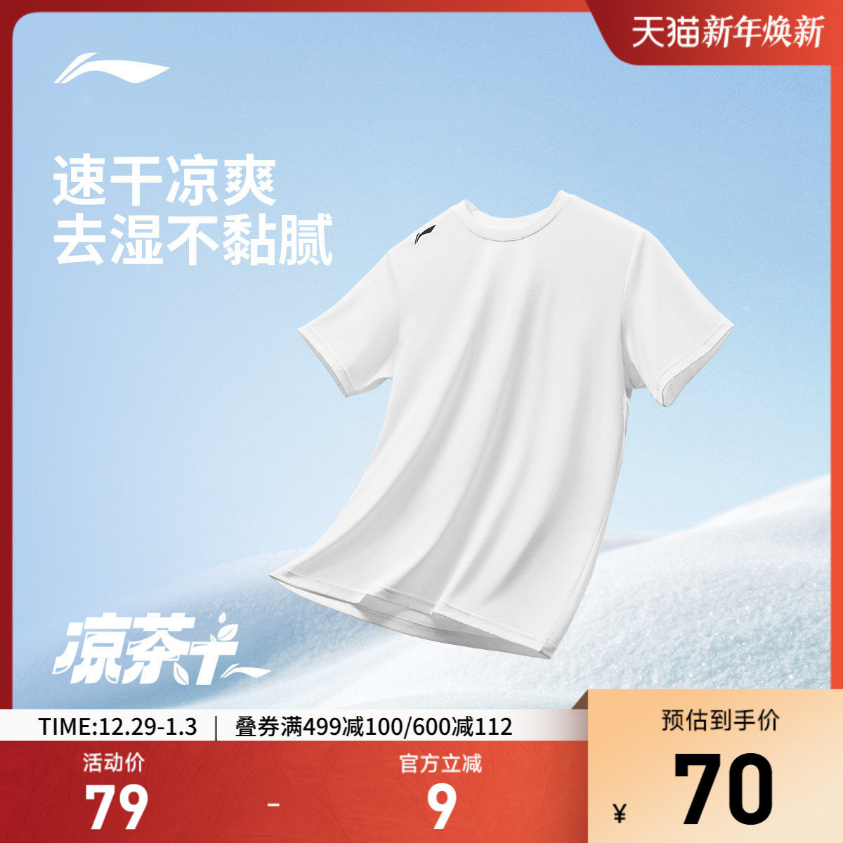 李宁短袖T恤男士夏季新款健身跑步透气白色宽松速干衣运动上衣男