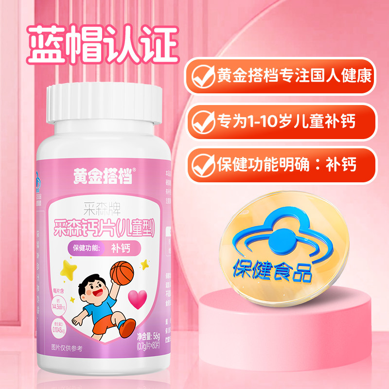 黄金搭档儿童采森钙片56g儿童青少年1-10岁补钙维生素D儿童型钙片
