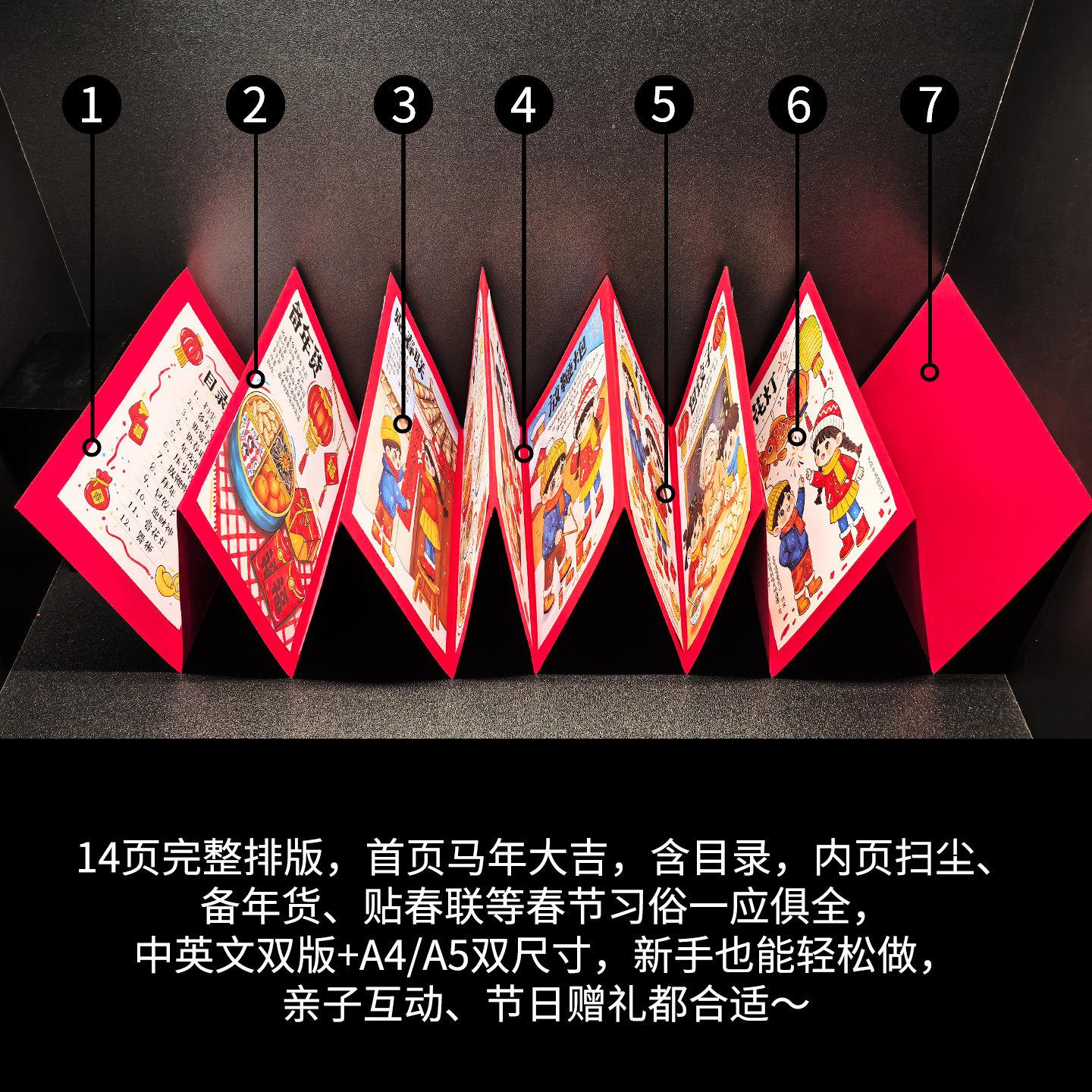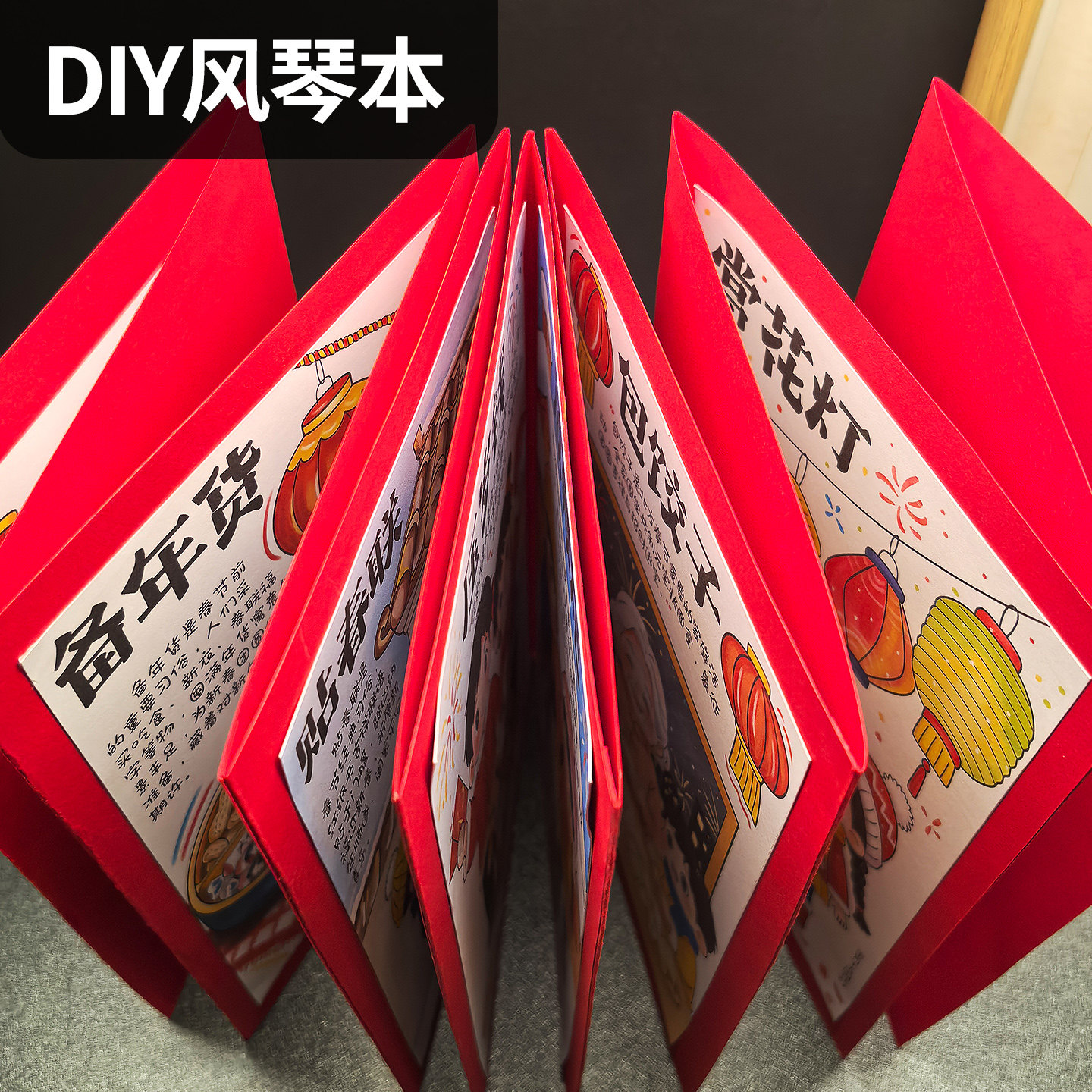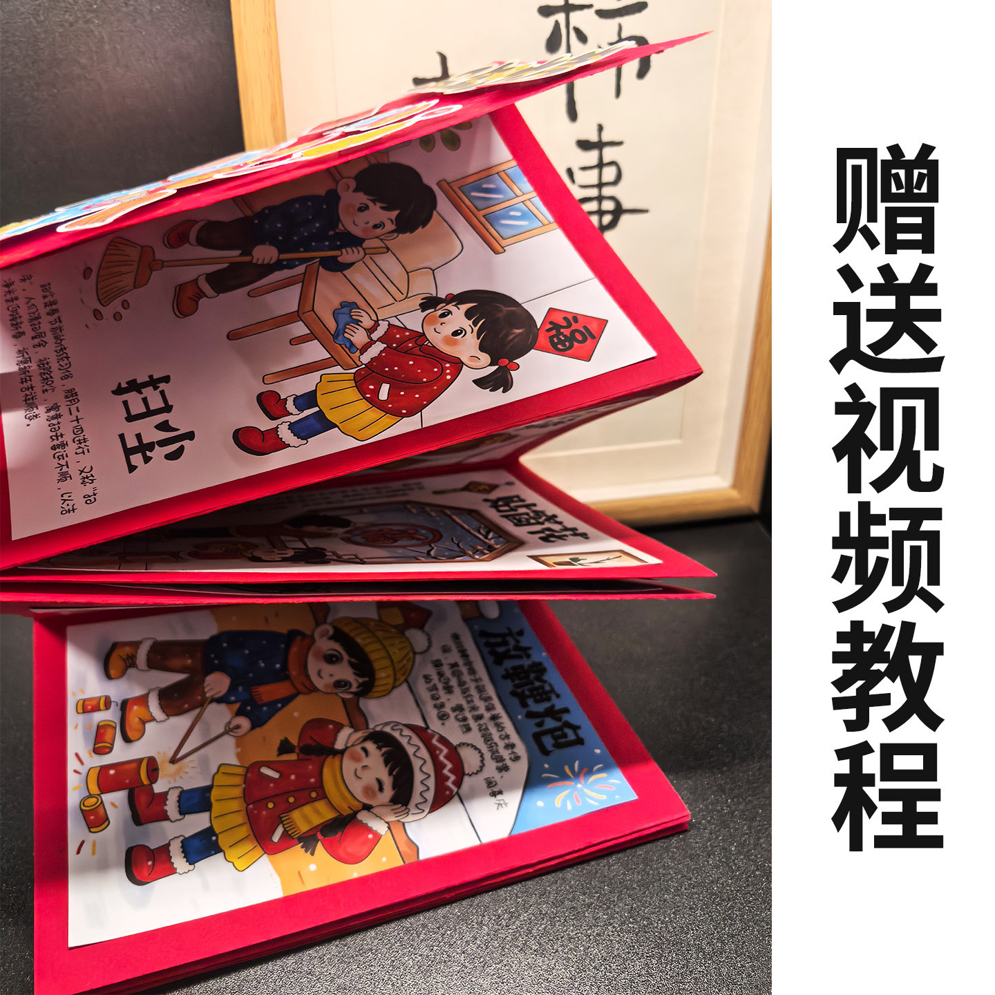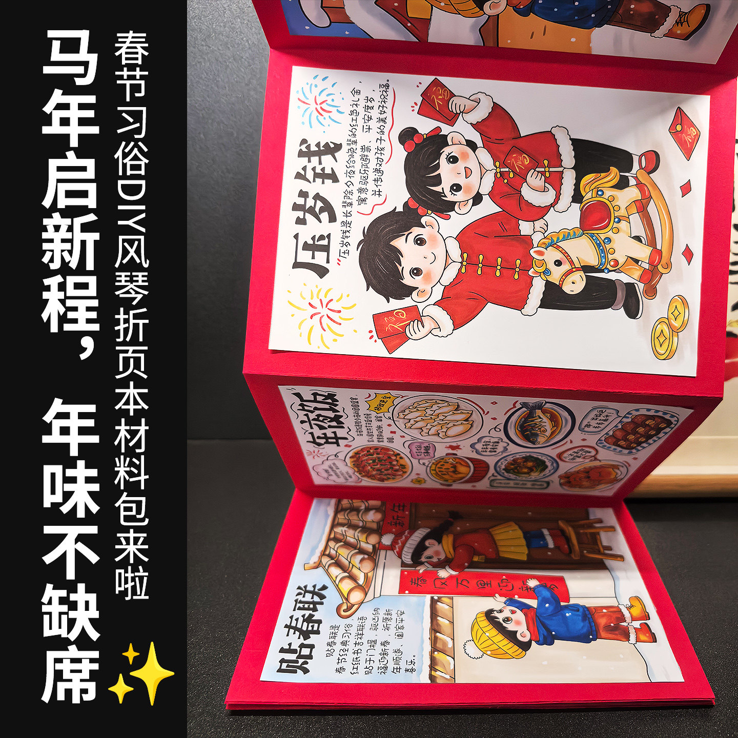 马年大吉风琴本折页DIY手工制作春节习俗绘本红色装饰品创意礼品