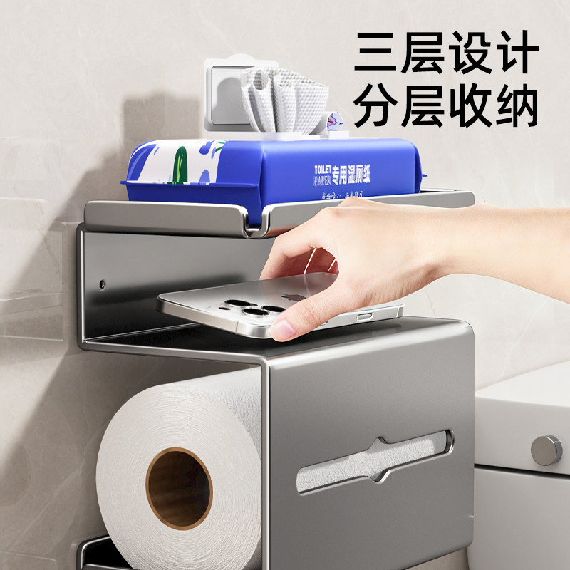 艾仕可碳钢卫生间壁挂纸巾盒卷纸架厕纸盒抽纸盒厕所湿纸巾置物架