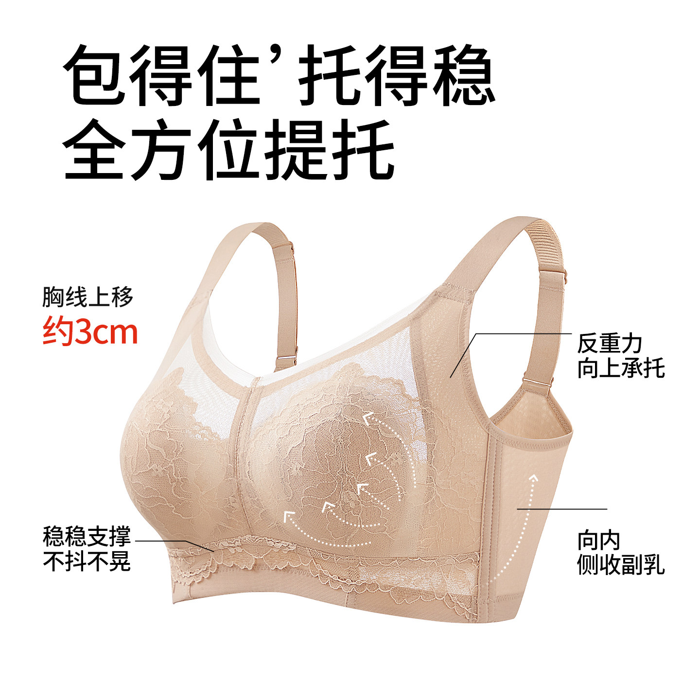 千奈美舒肤蕾丝内衣女大胸显小大码全罩杯收副乳无痕25新款文胸
