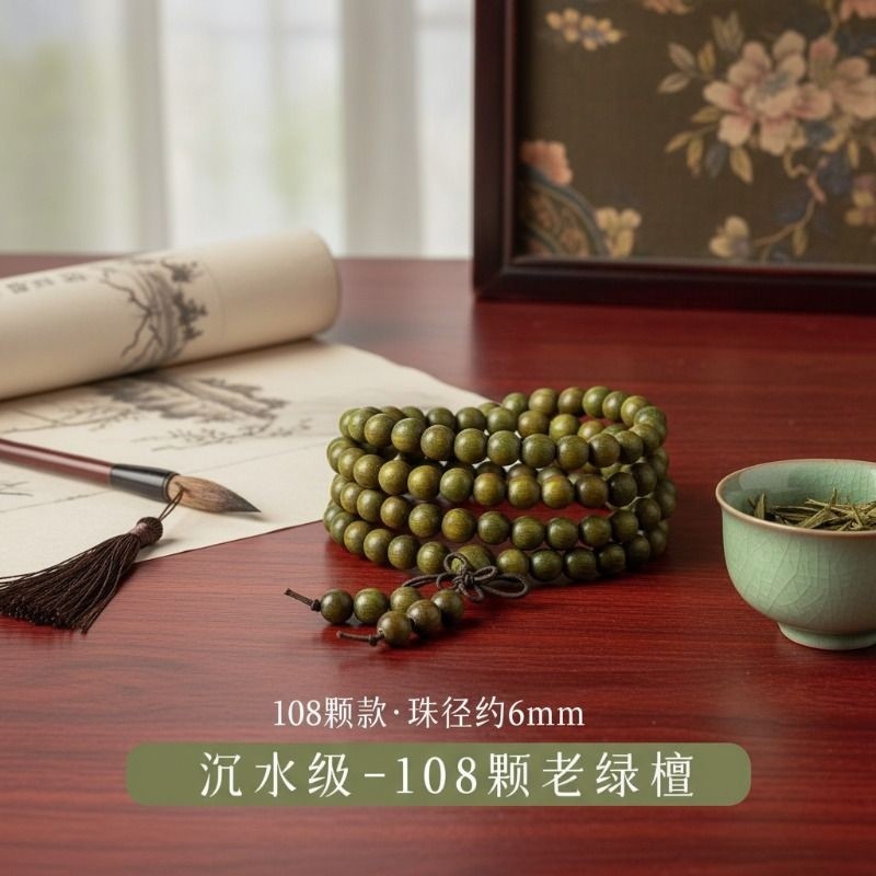 绿檀手串女款多圈108颗念珠文玩佛珠盘玩男生手链沉香绿檀木珠子