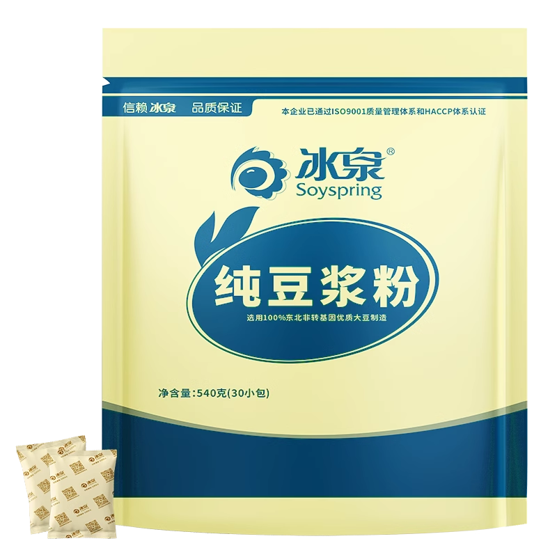 冰泉纯豆浆粉540g原味无添加高蛋白早餐冲泡黄豆冲饮袋装大豆健康