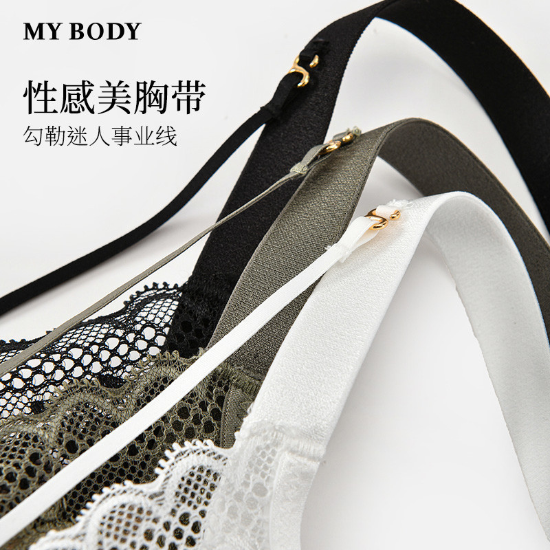 商场同款MYBODY新款渔网蕾丝文胸胸罩性感美胸带小胸聚拢显大内衣