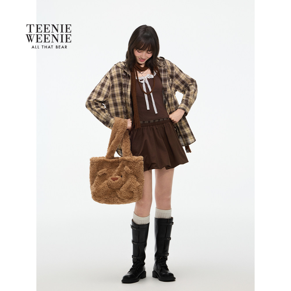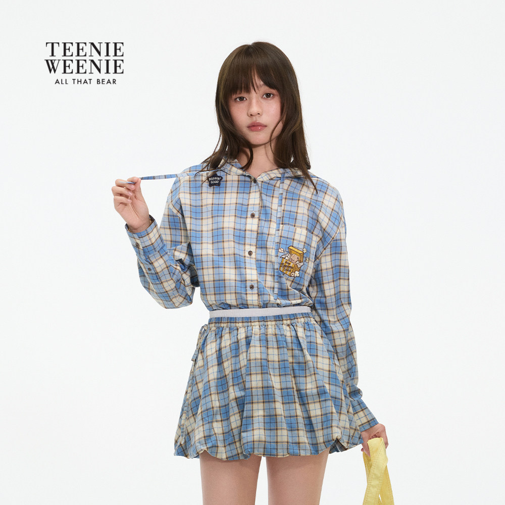 TEENIEWEENIE bearnova26春季新款女装宽松舒适格纹刺绣连帽衬衫