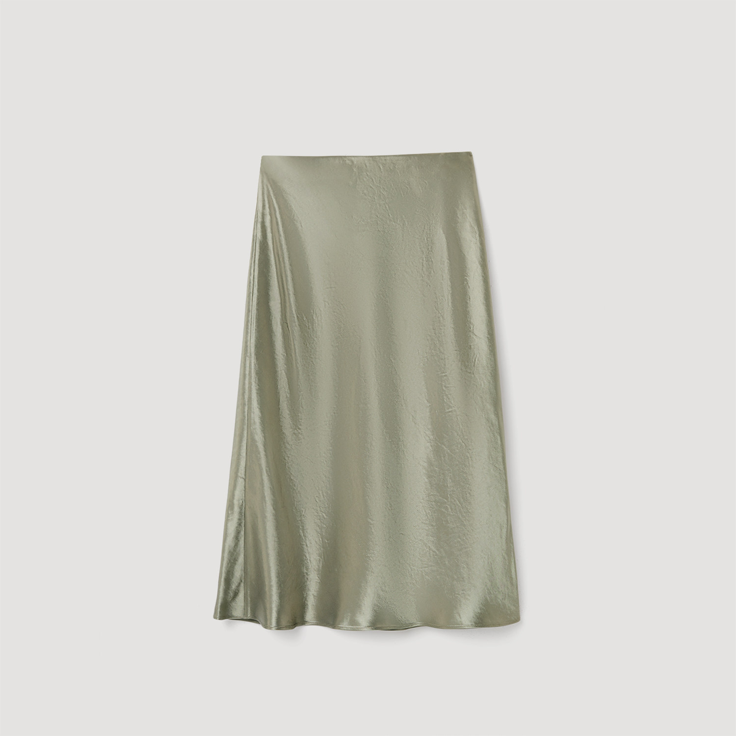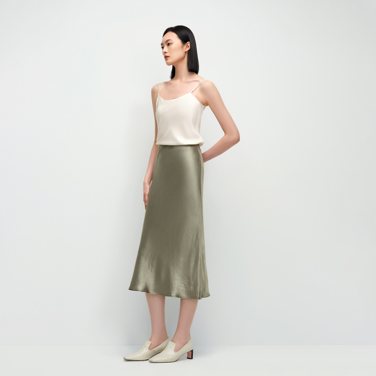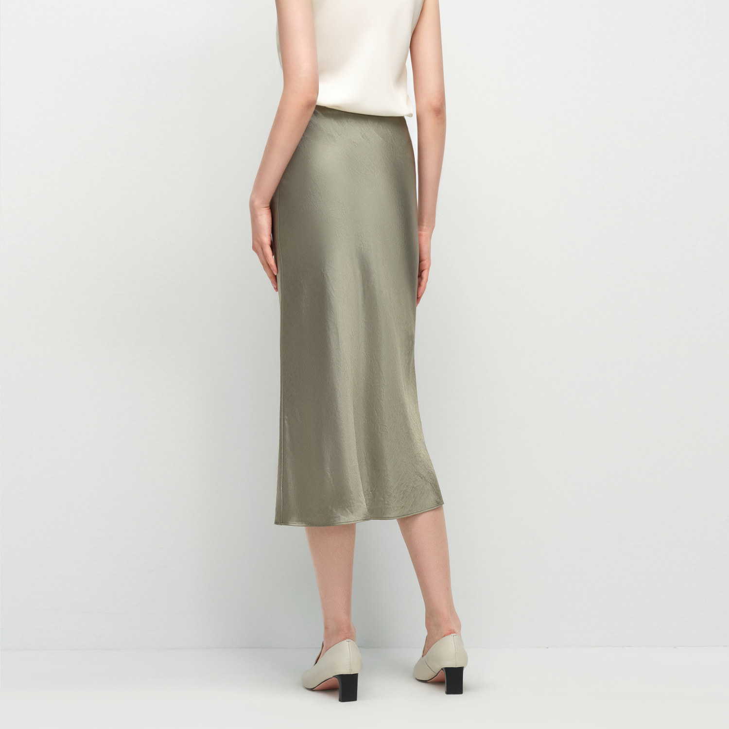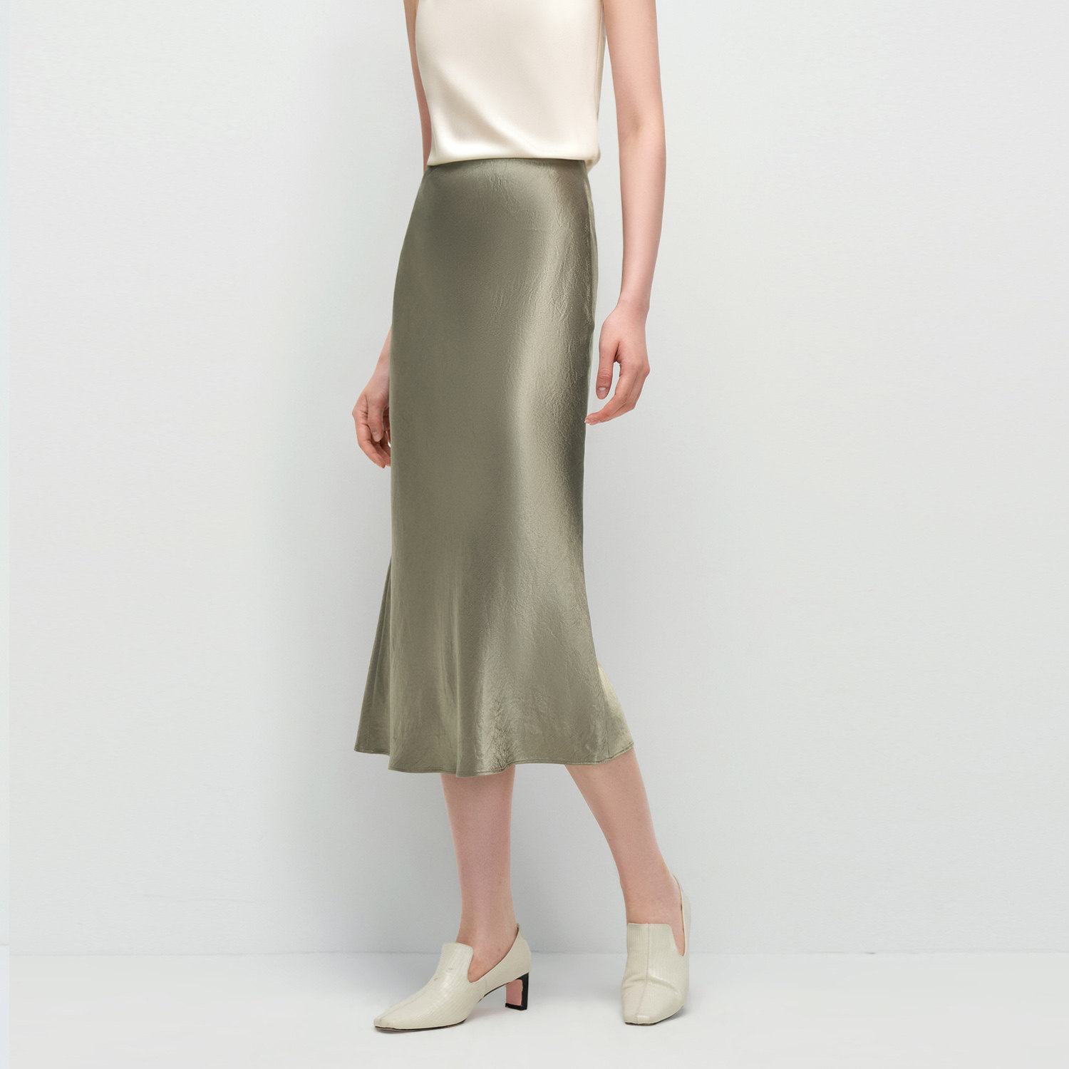 OVV2025春夏新款女装淡人醋酸面料斜纹缎面简约舒适直筒半身裙