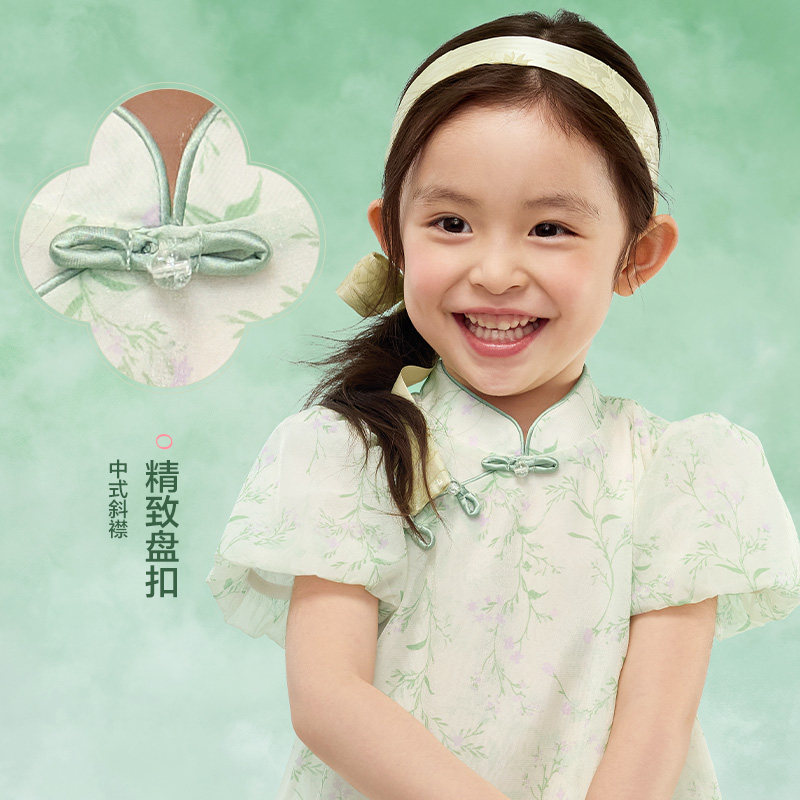 巴拉巴拉童装女童连衣裙夏装儿童裙子立领国风新中式公主裙甜休闲