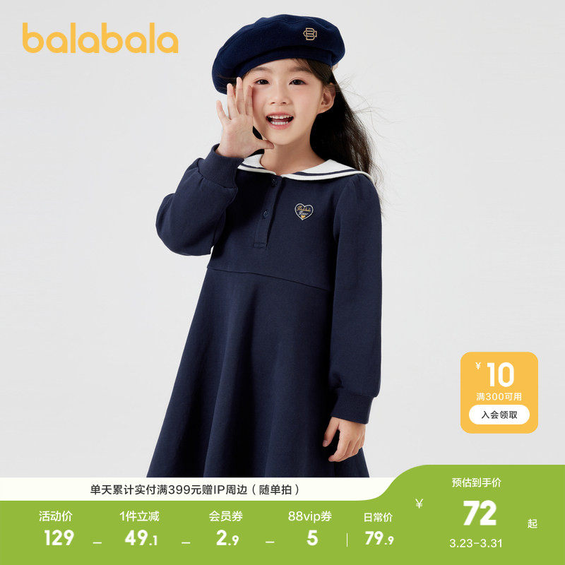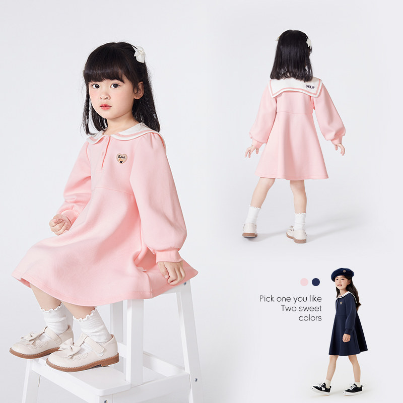 巴拉巴拉童装女童连衣裙春装学院风小童宝宝翻领儿童裙子可爱洋气