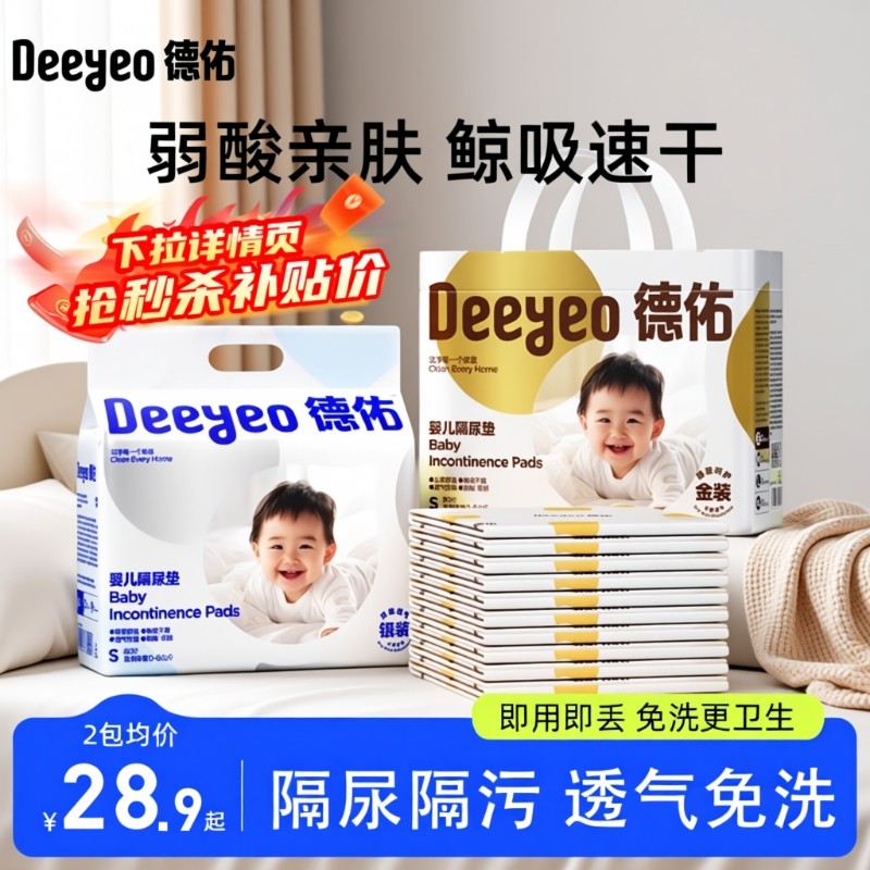 德佑金装婴儿一次性隔尿垫新生儿防漏透气尿垫