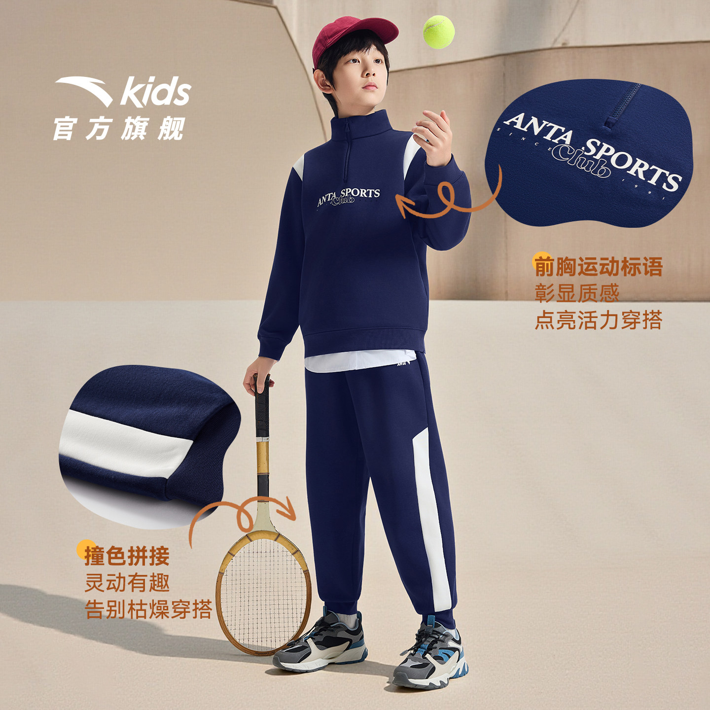 安踏儿童装男童套装秋冬2025新款加绒卫衣卫裤洋气套装新年两件套