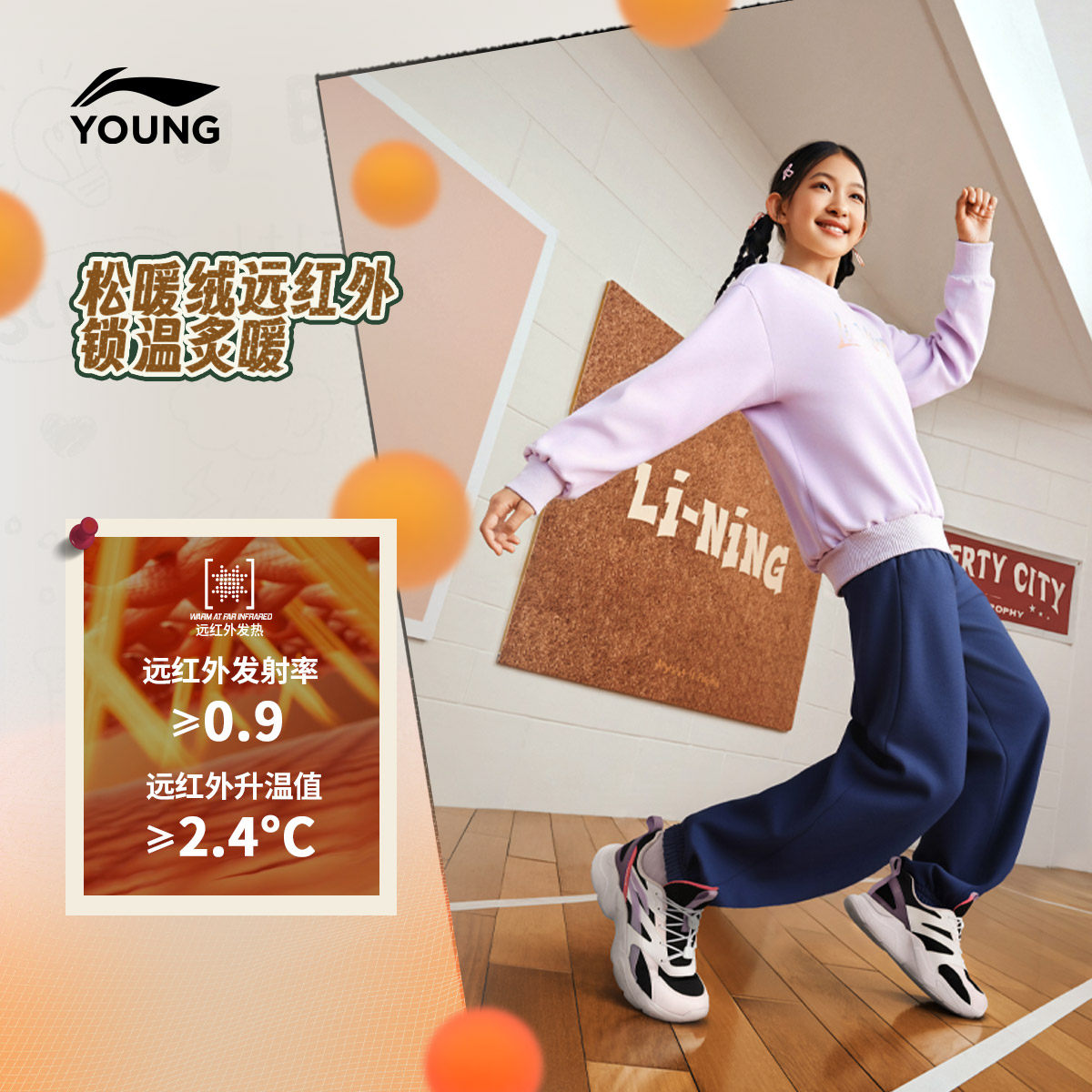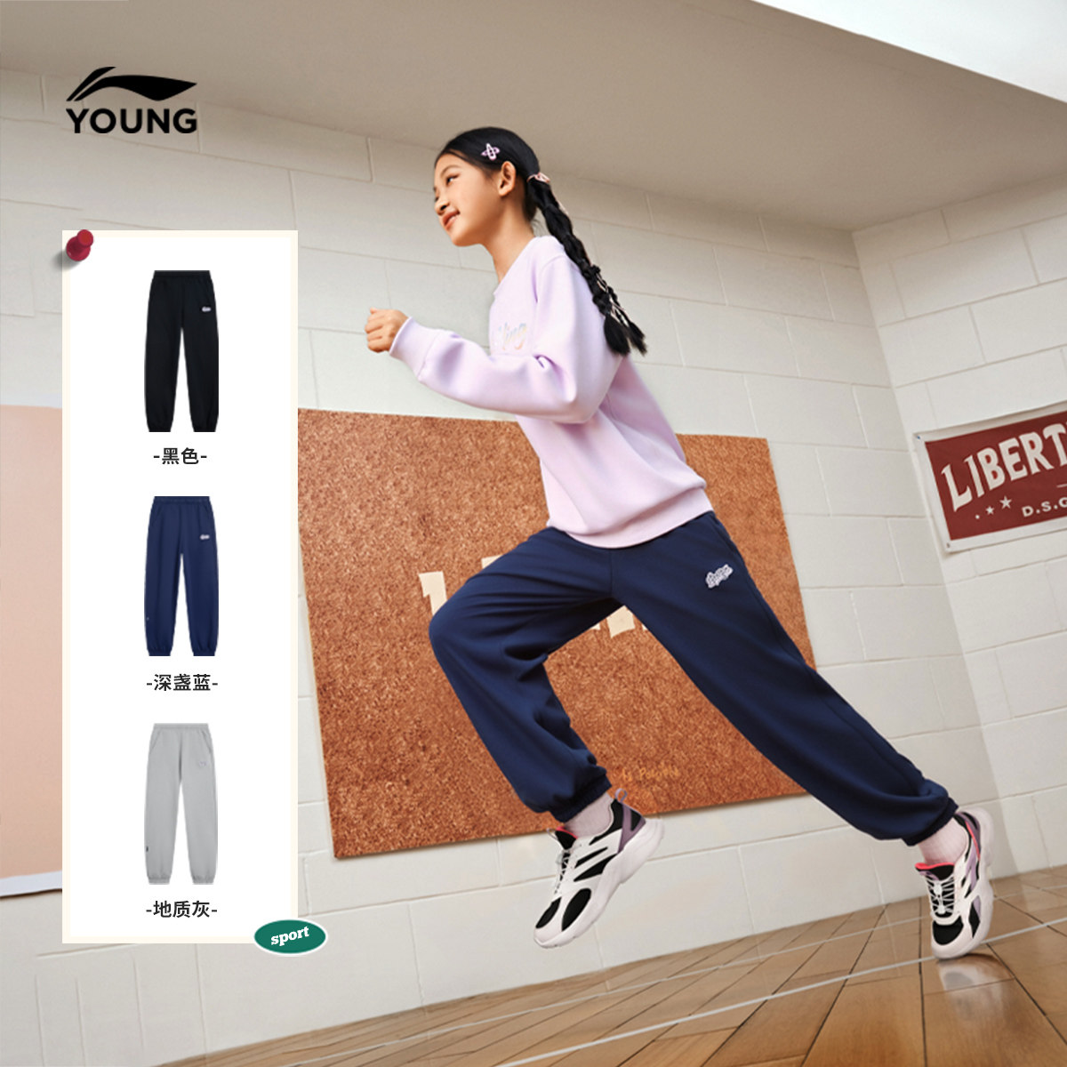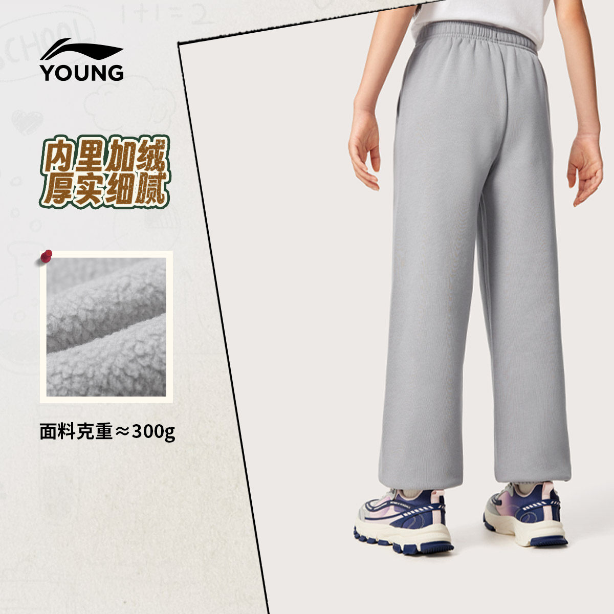 锁温科技|李宁小女孩加绒裤子冬装新款冬季女童装中大童运动长裤
