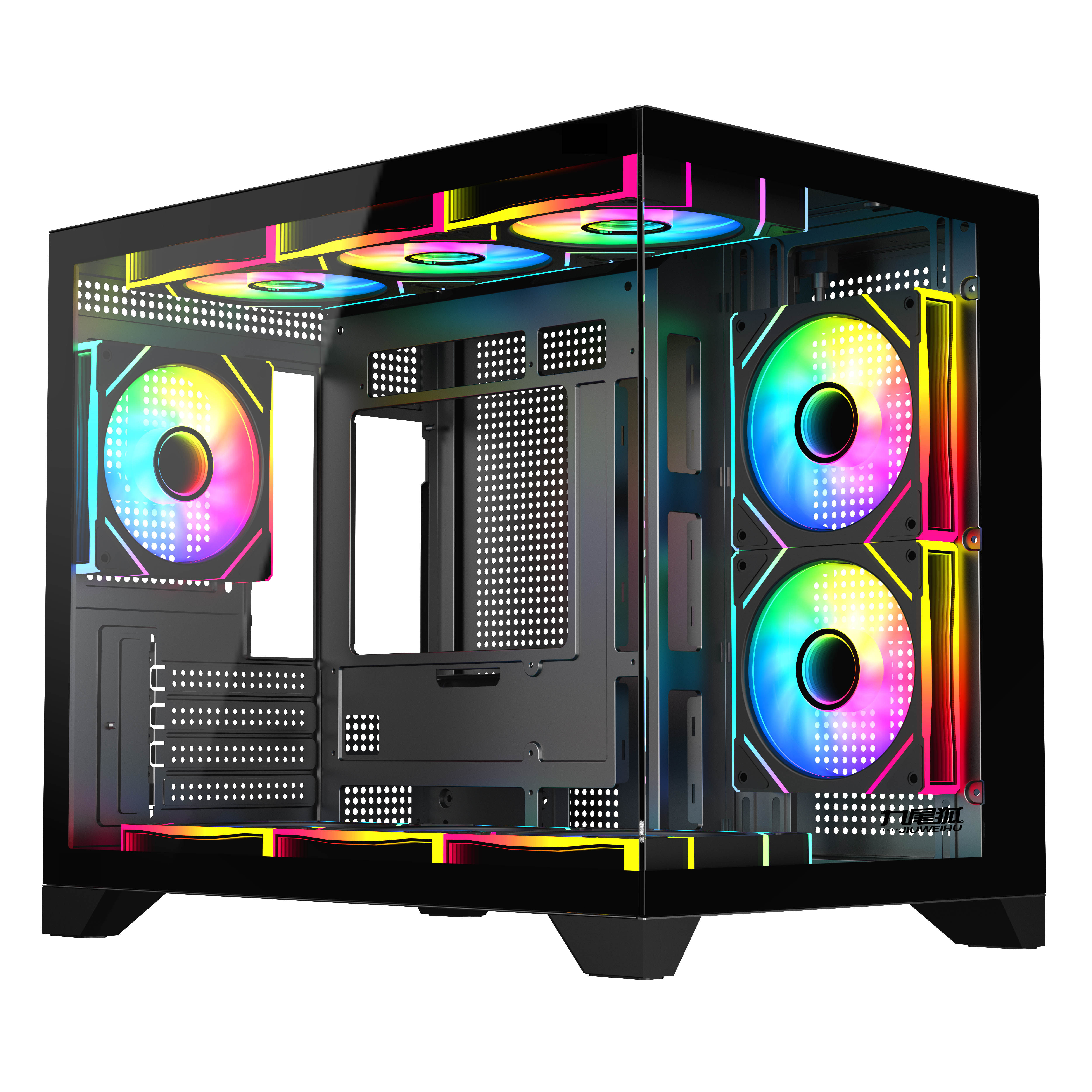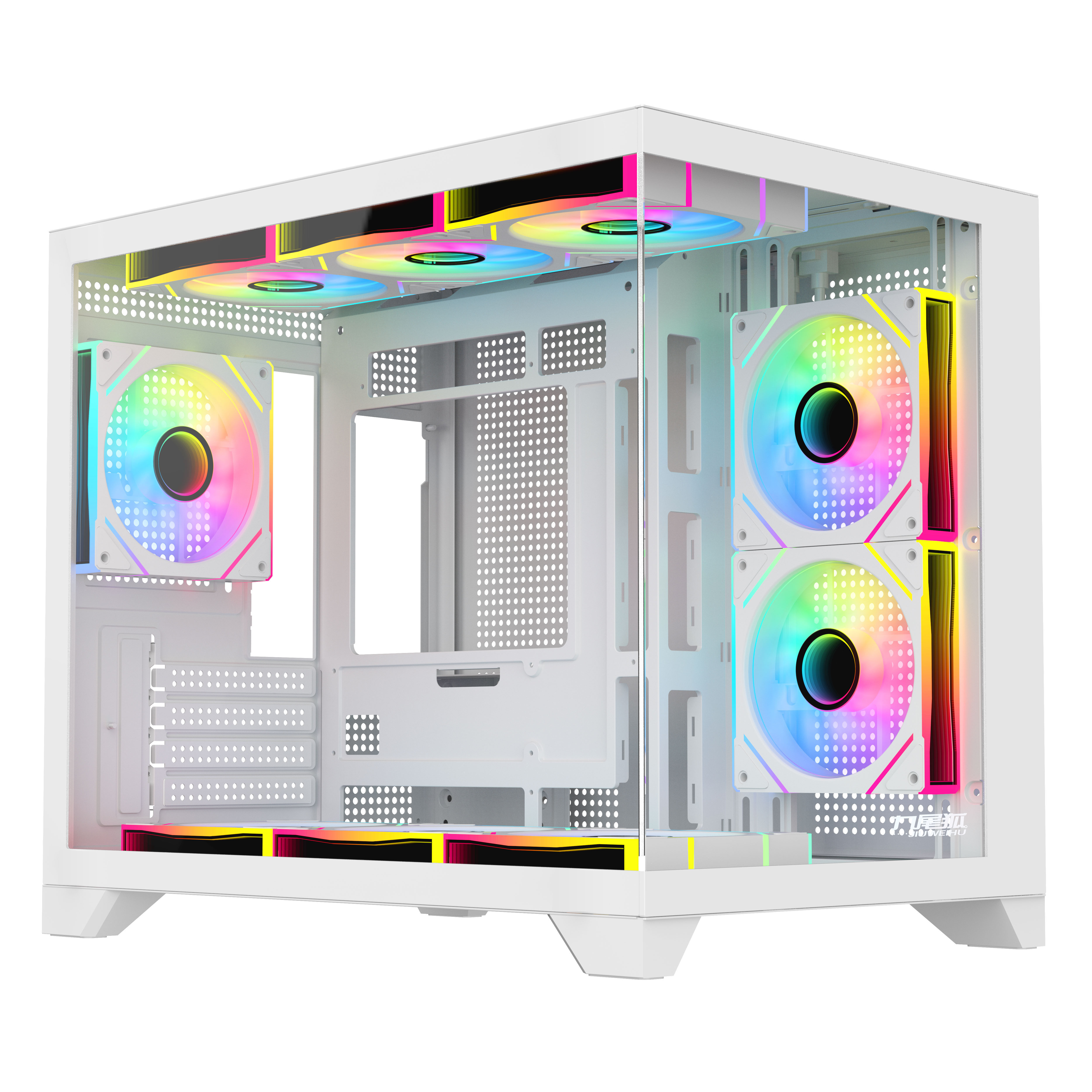九尾狐T13海景房机箱电脑机箱台式机matx全侧透明diy外壳itx白色