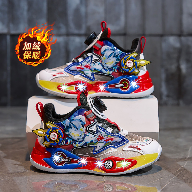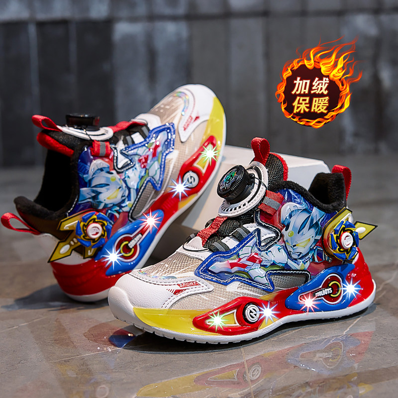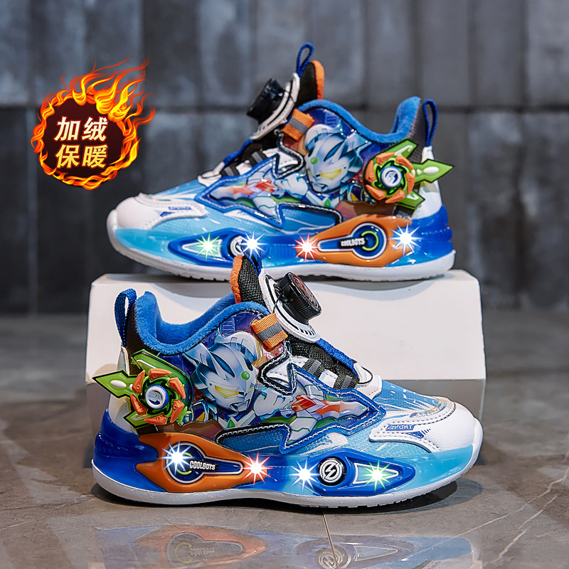 加绒儿童鞋子男童带灯秋冬2025新款二棉运动鞋亮灯发光老爹鞋男孩