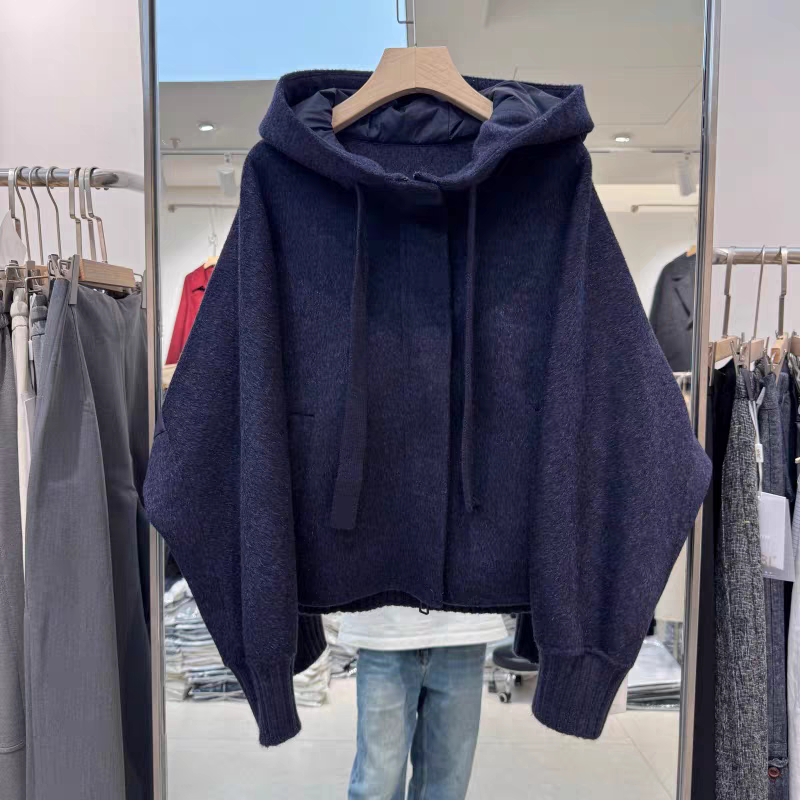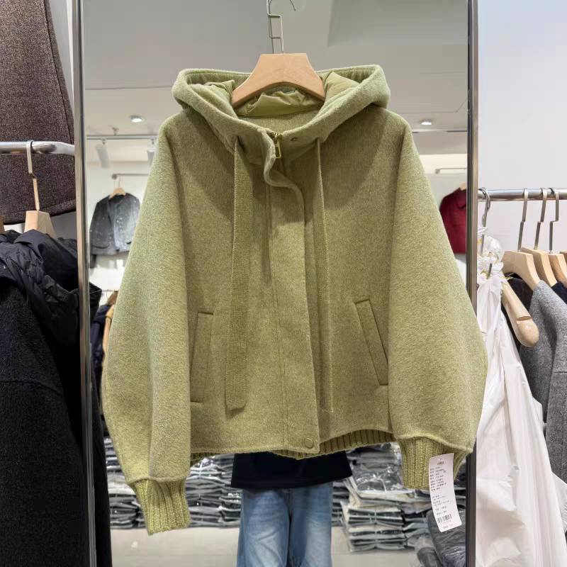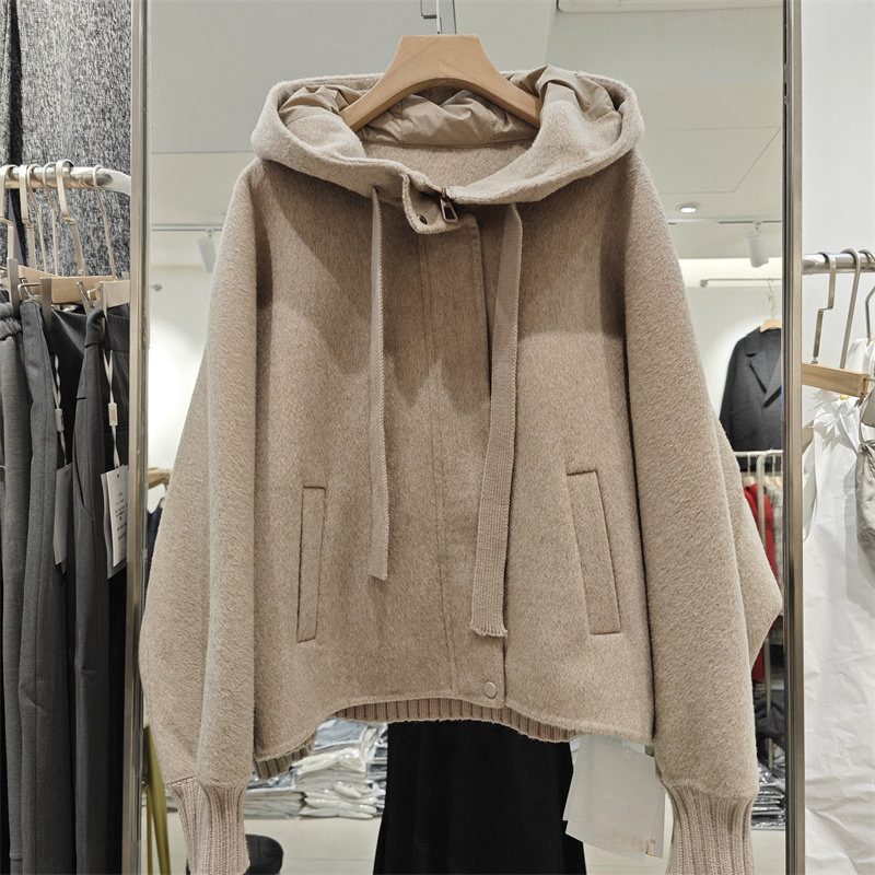 2025冬新款时尚连帽领双面羊绒拼接后背羽绒连帽保暖休闲减龄大衣