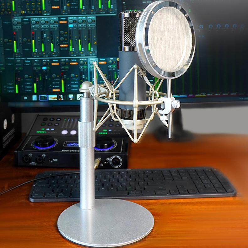 银色电容话筒支架u87103麦克风支架通用可升降万向加重桌面支架