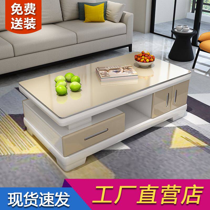 b现代简约烤漆茶几钢化玻璃黑白金色小户型客厅家具电视柜组合加
