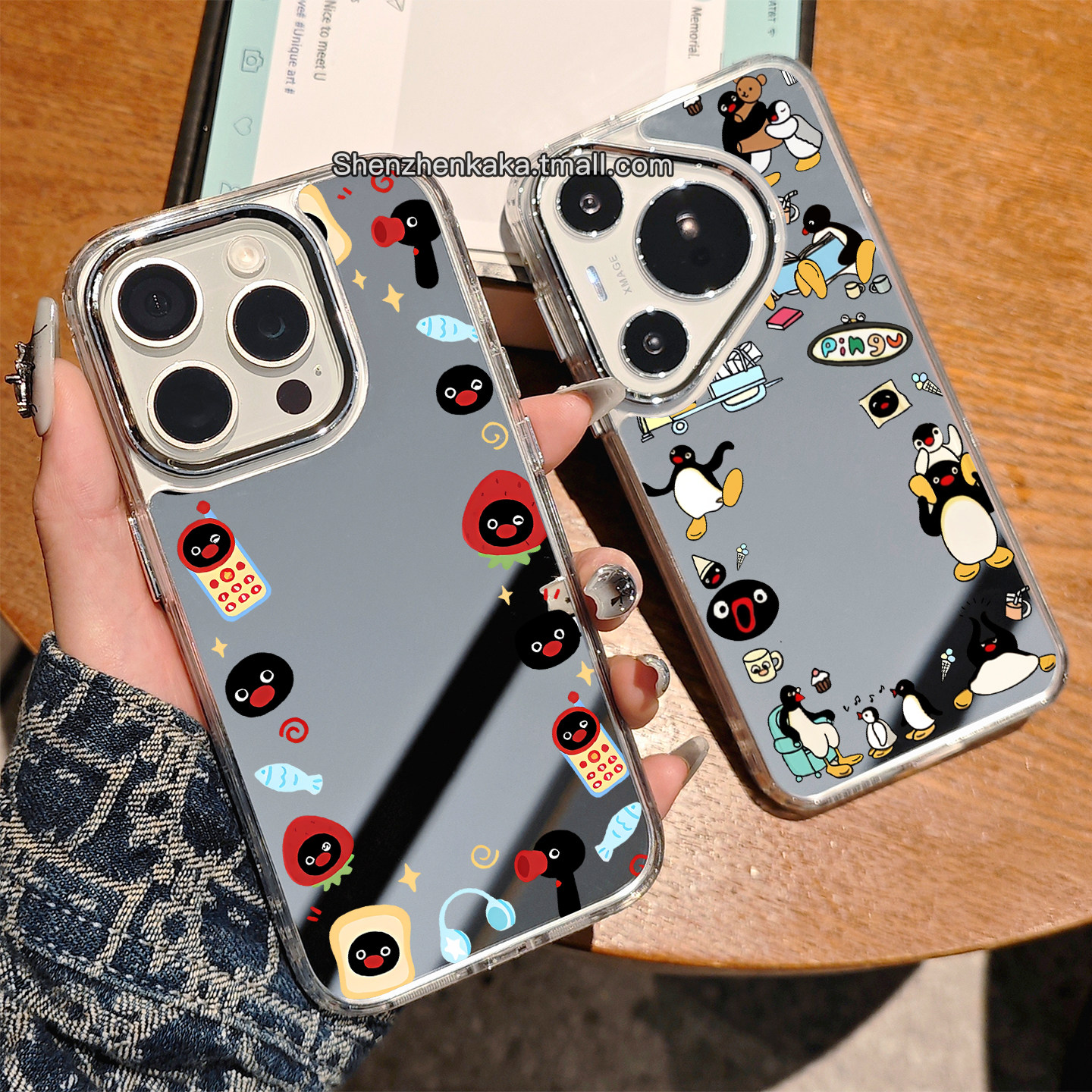 PINGU企鹅手机壳镜面苹果17适用16promax小米15好看华为pura80/nova13可爱卡通opporeno14新款日韩vivox200