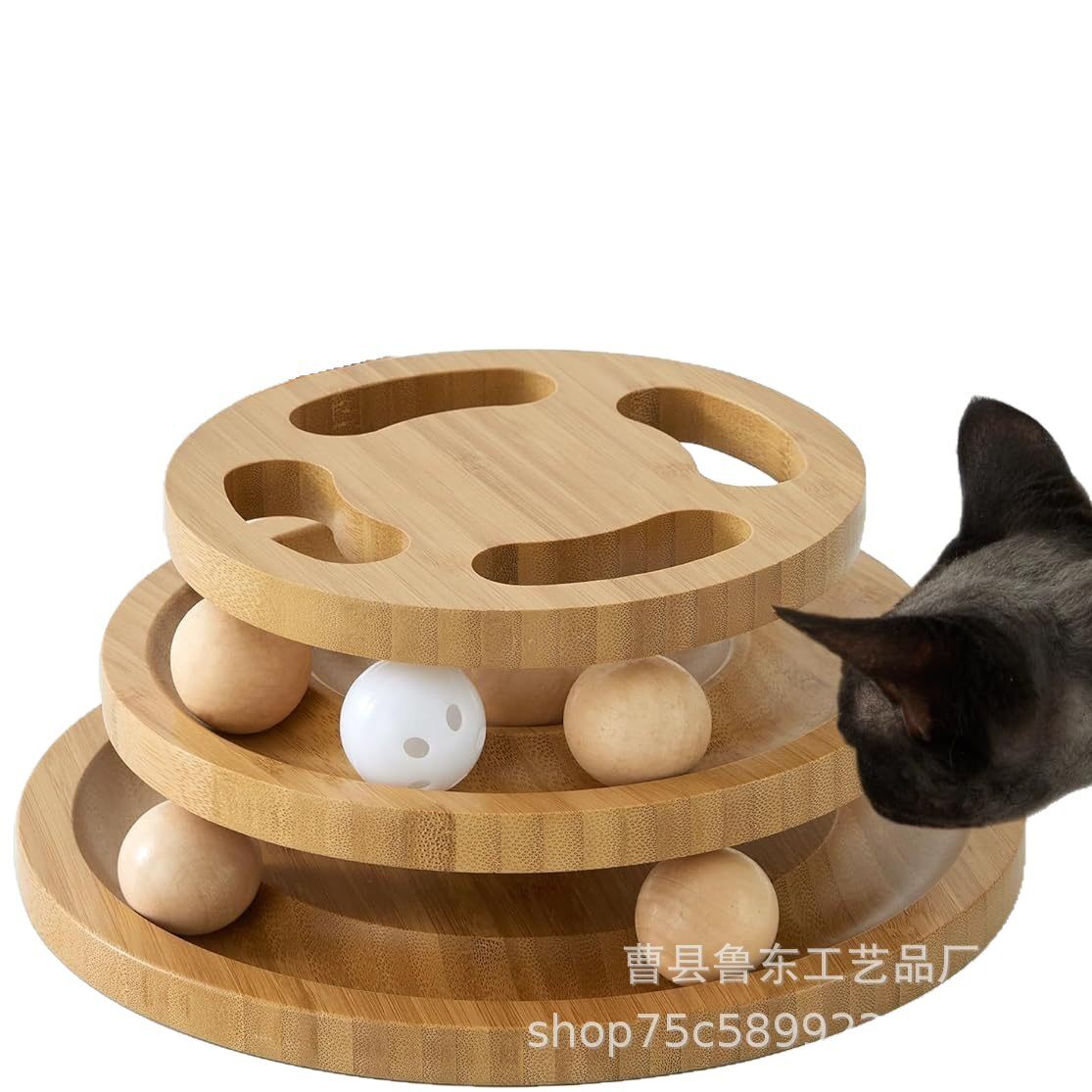 木制逗猫玩具双层猫咪解闷轨道自嗨玩具实木家用宠物锻炼耐咬轨道