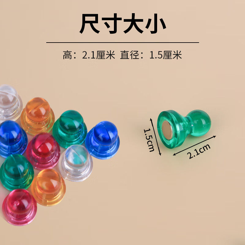 优必利 强磁图钉透明强力磁钉彩色圆形吸铁石办公白板教学教具留言板磁粒扣冰箱磁吸固定器