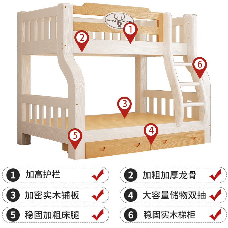 上下铺双层床上下床高低床子母床儿童床全实木加粗加厚成人小户型