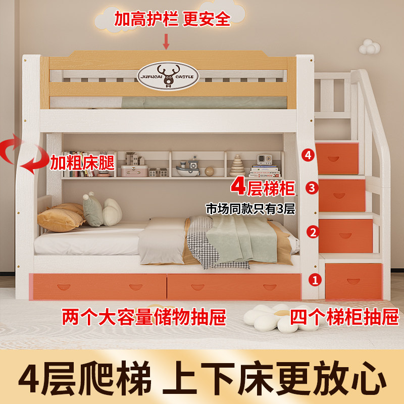 上下床双层床多功能高低床子母床两层全实木儿童床上下铺木床大人