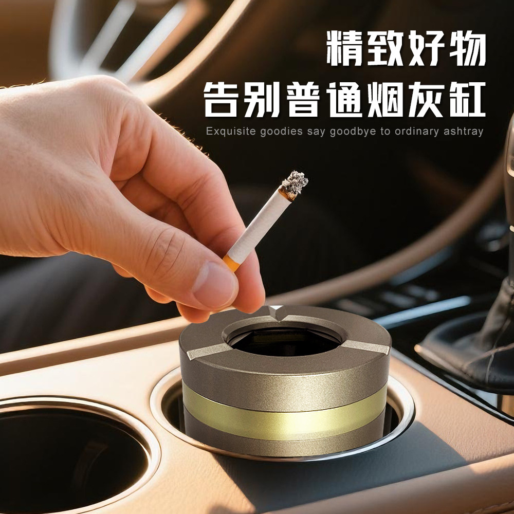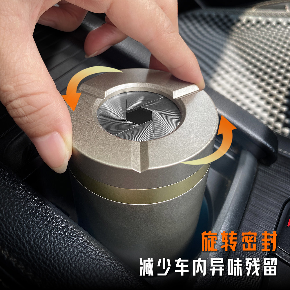 2025新款不锈钢车载烟灰缸密封旋转轻奢防灰飞缸大号金属创意车用