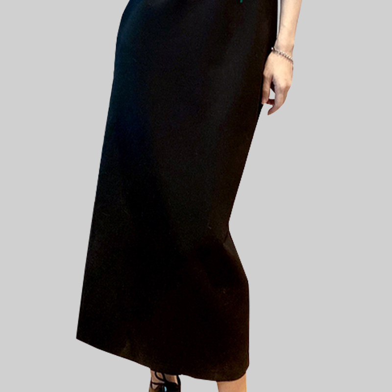 COCOBELLA简约气质黑色收腰极简风连衣裙女优雅短袖长裙FR3033-2