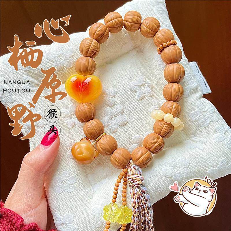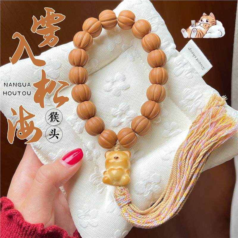 精雕南瓜猴头手串野生原籽核桃文玩佛珠手捻单圈盘玩手持手链男女
