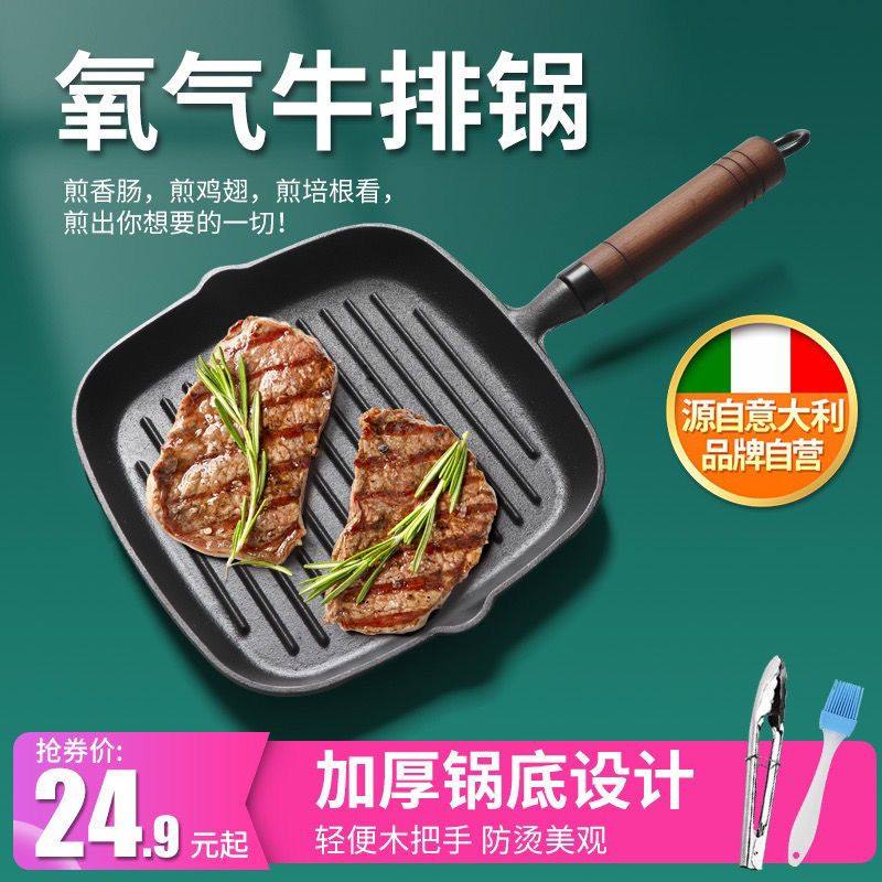 家用新款铸铁牛排煎锅不粘锅专用平底锅条纹加厚电磁炉牛扒专用锅