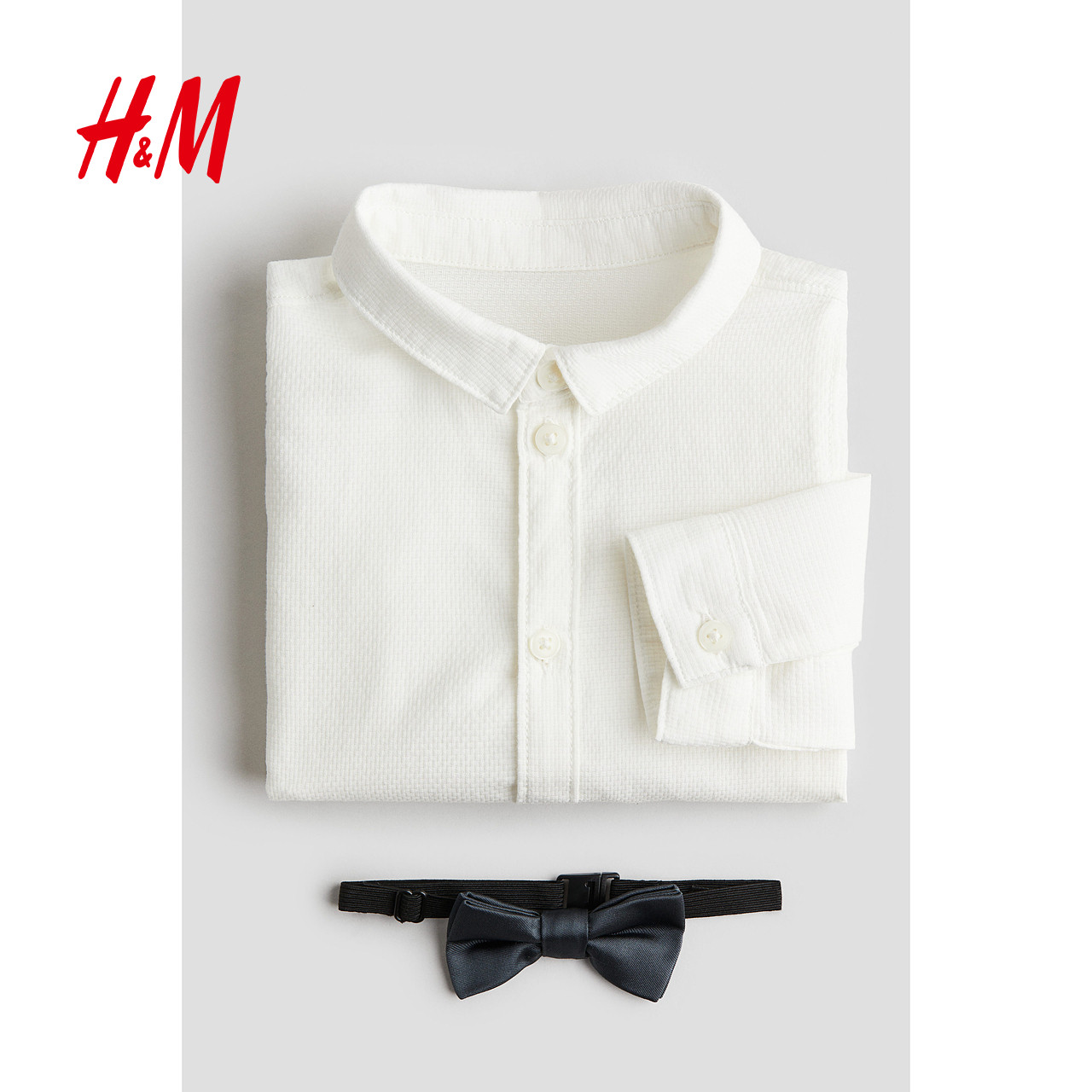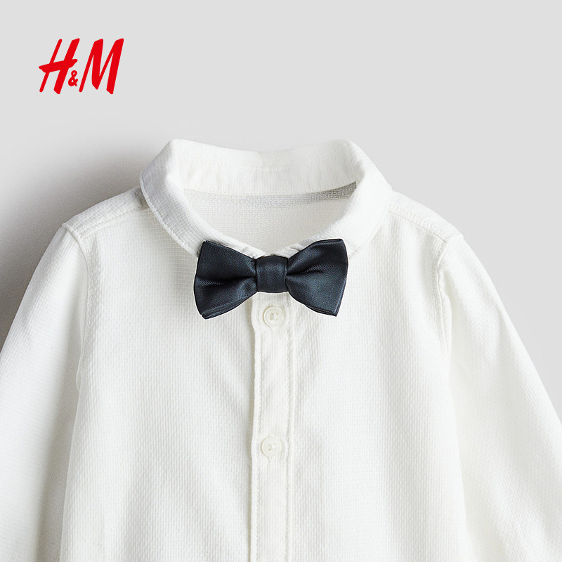 HM童装男婴套装2件式冬季简约衬衫和领结套装1242567