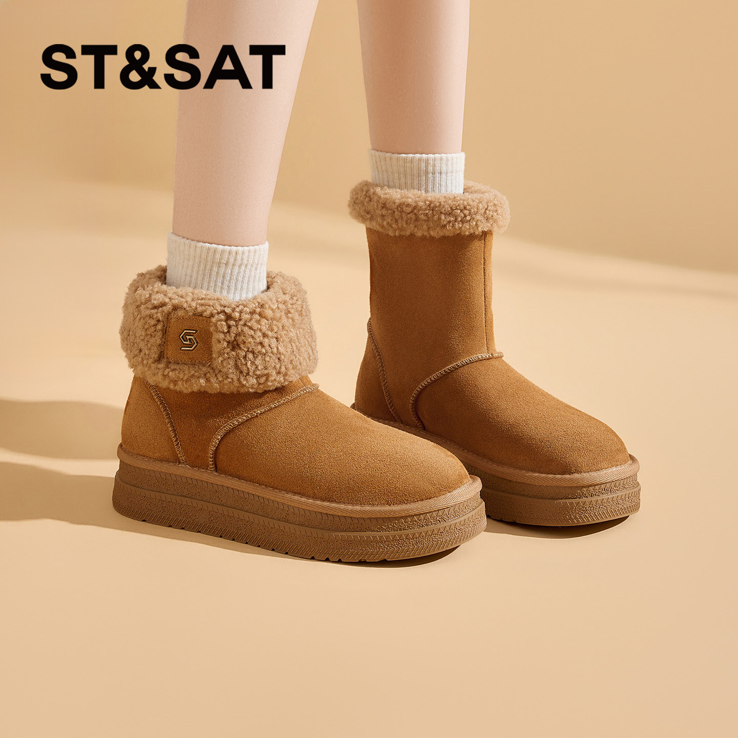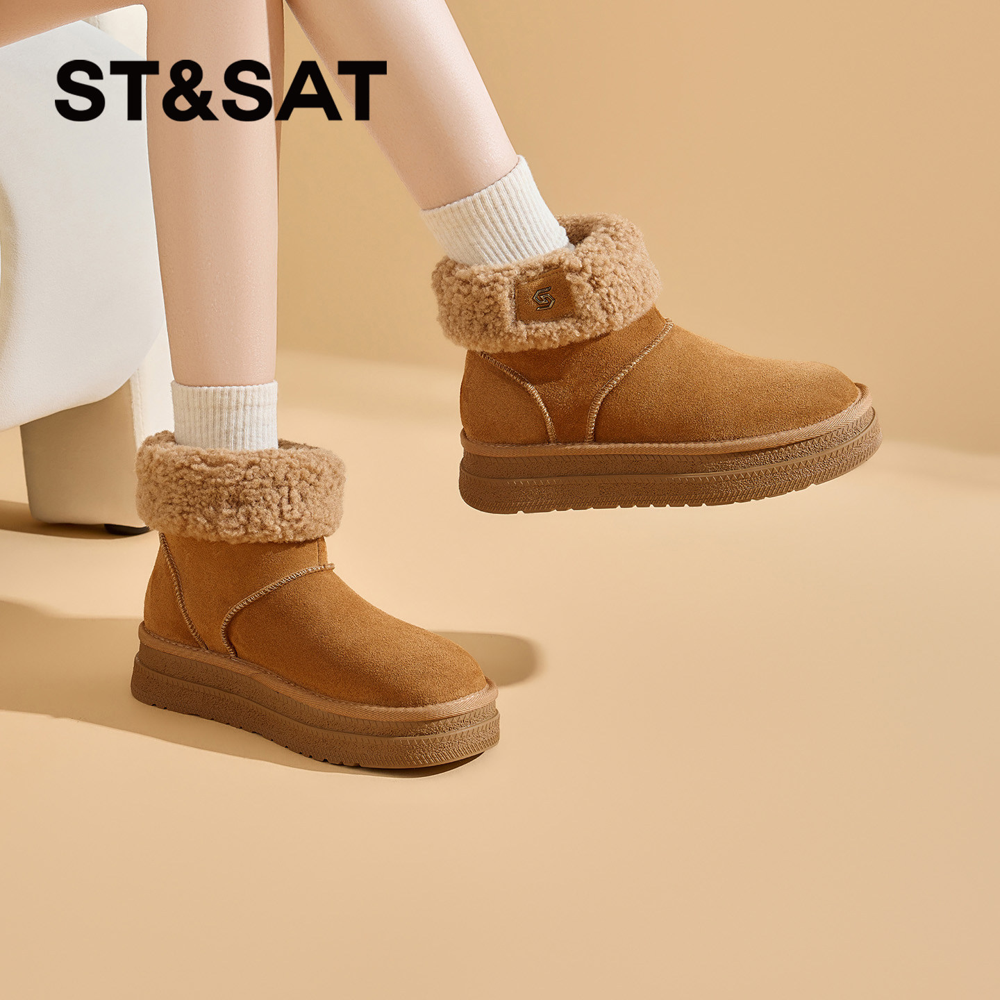 星期六厚底雪地靴女2025年冬季新款爆款毛毛保暖百搭时尚防滑短靴
