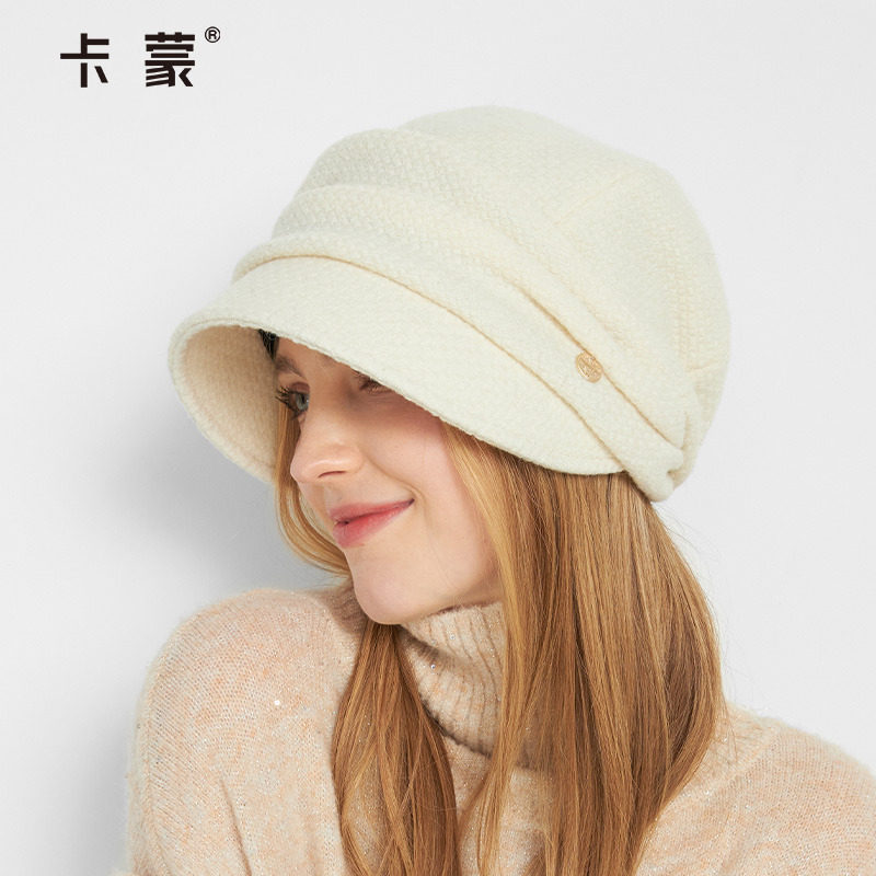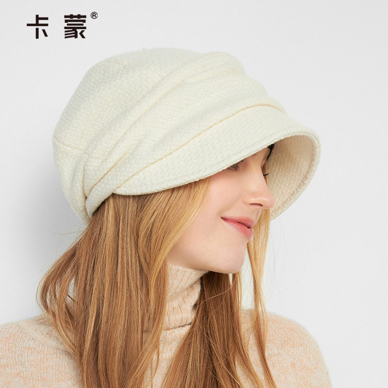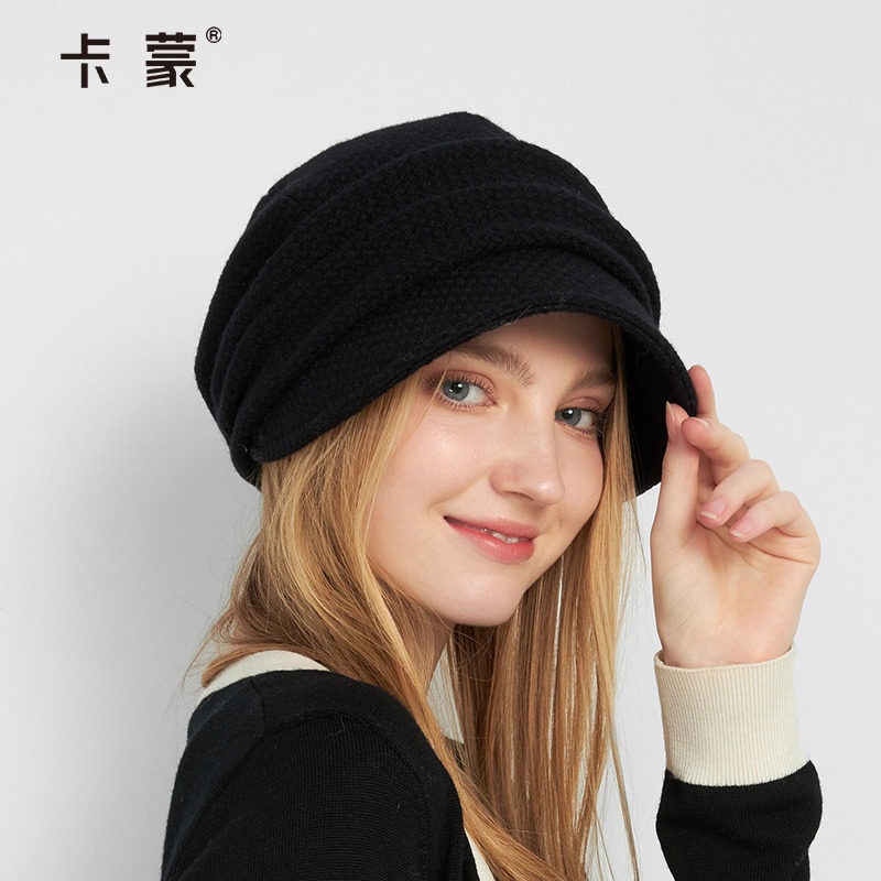 卡蒙纯色后托绵羊毛气质鸭舌贝雷帽女显脸小秋冬英伦百搭堆堆帽新