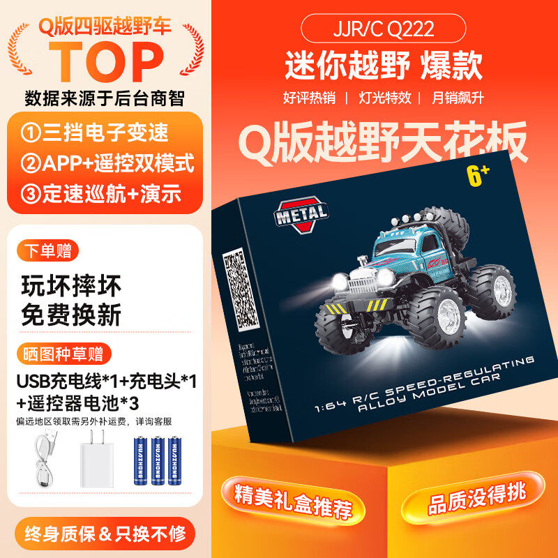 JJR/C迷你合金短卡遥控越野大脚车电动玩具车儿童遥控车玩具礼物