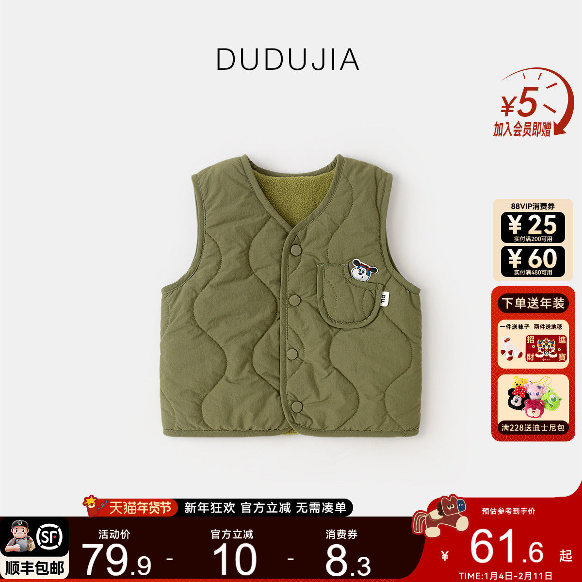 小猪大卫男女宝宝贴身马甲可爱造型恐龙狐狸颗粒绒磨毛马夹1-3岁